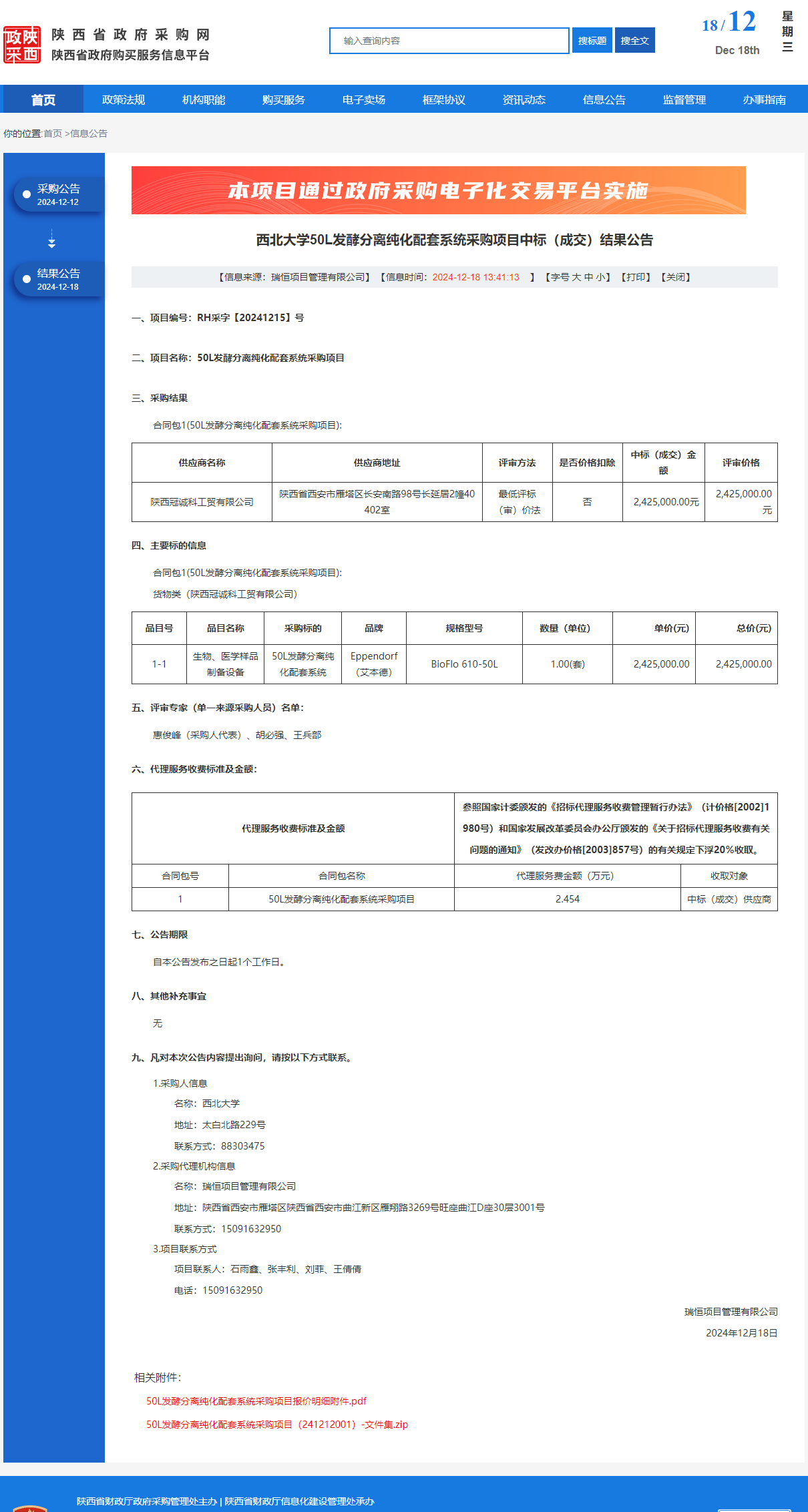 欧冠官方网站50L发酵分离纯化配套系统采购项目中标(成交)结果公告 作者:采购与招标办公室 编辑: 时间:2024-12-18 原公告链接:https://www.ccgp-shaanxi.gov.cn/freecms/site/shaanxi/ggxx/info/2024/8a69c5a59218576d0193d83e10003654.html