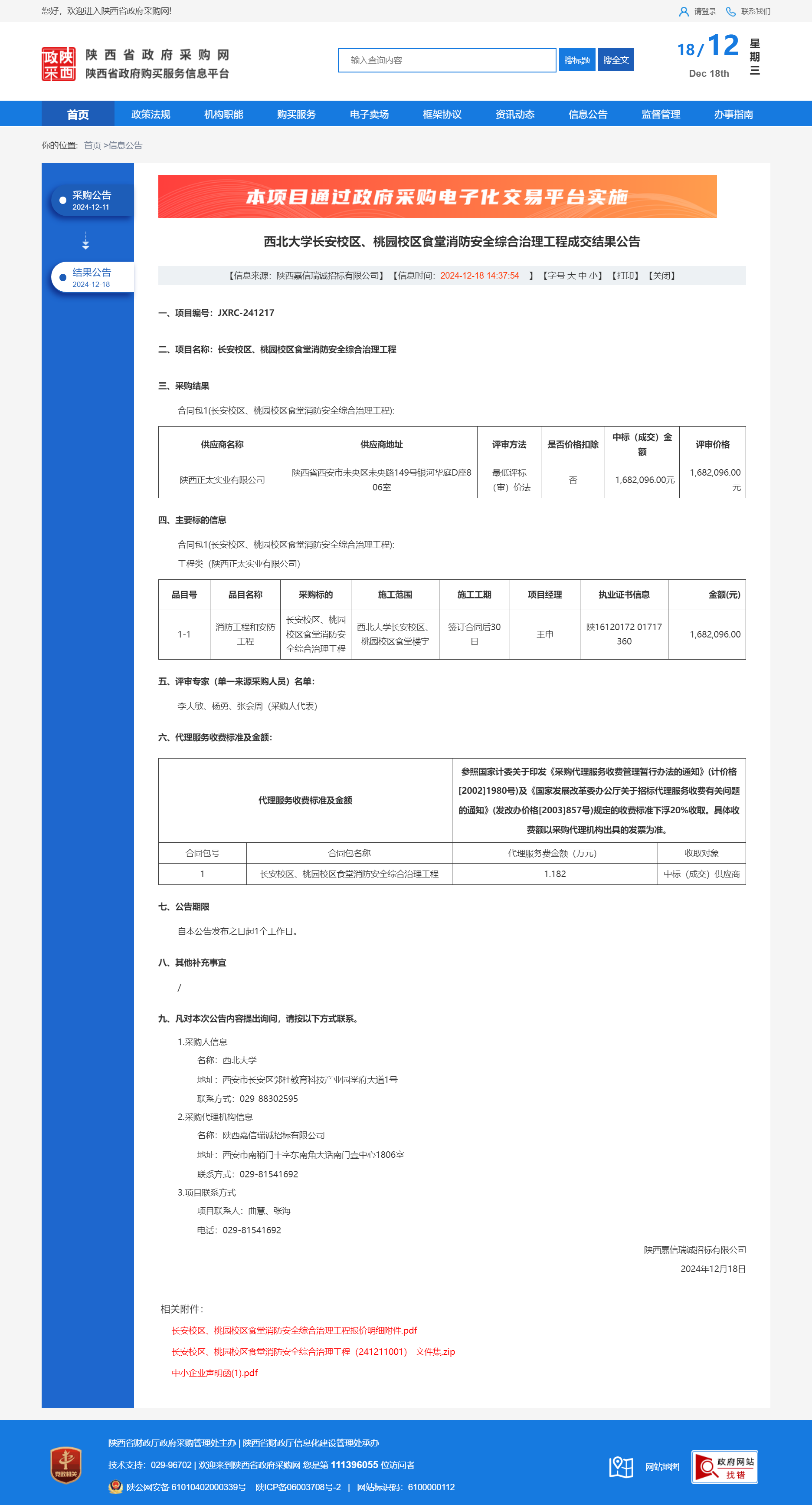 欧冠官方网站长安校区、桃园校区食堂消防安全综合治理工程成交结果公告