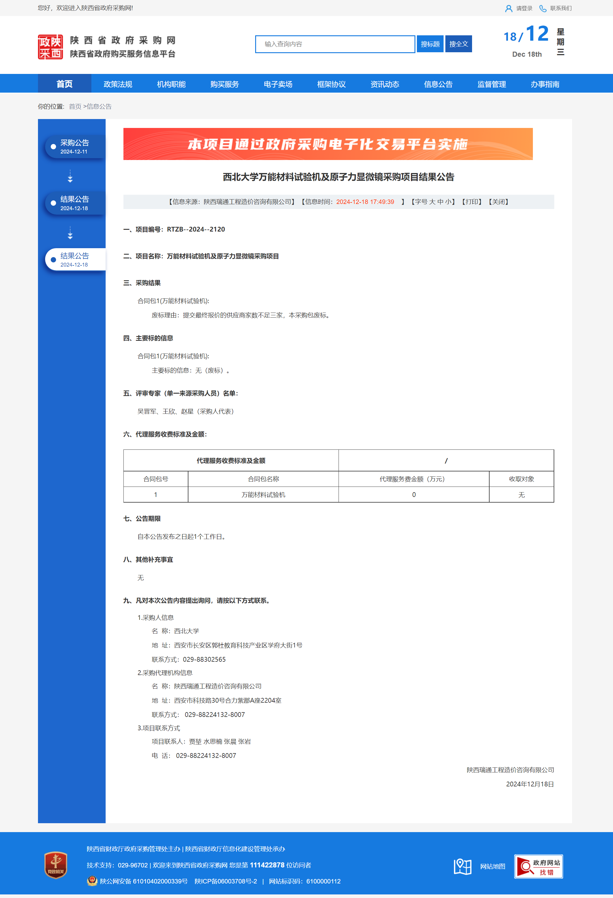 欧冠官方网站万能材料试验机及原子力显微镜采购项目结果公告