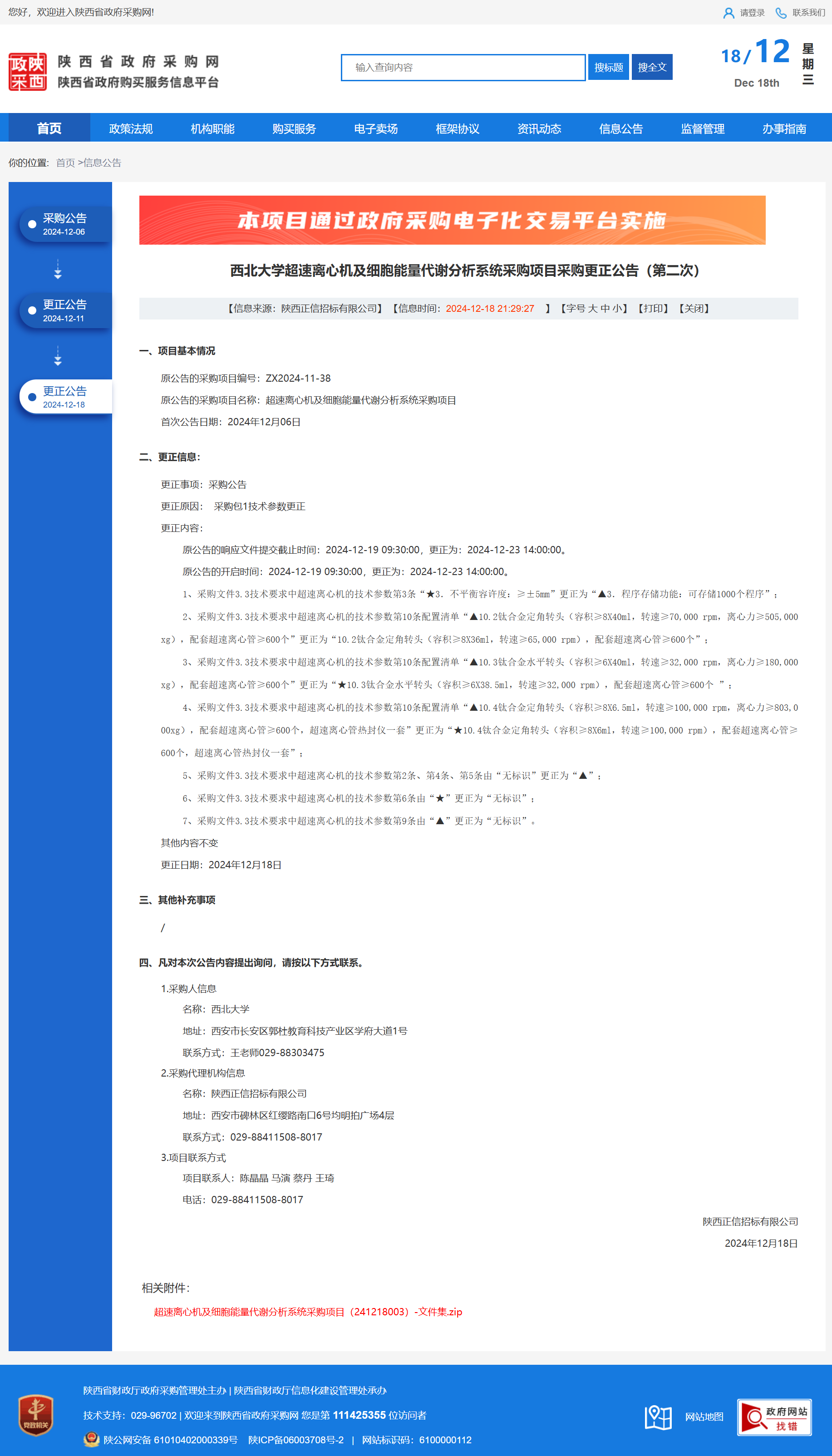 欧冠官方网站超速离心机及细胞能量代谢分析系统采购项目采购更正公告(第二次) 作者:采购与招标办公室 编辑: 时间:2024-12-18 原公告链接:https://www.ccgp-shaanxi.gov.cn/freecms/site/shaanxi/ggxx/info/2024/8a69c5a59218576d01939bb6350f3f92.html?noticeType=001016¬iceId=5be8bcca-b3ca-11ef-8063-08c0eb20c666