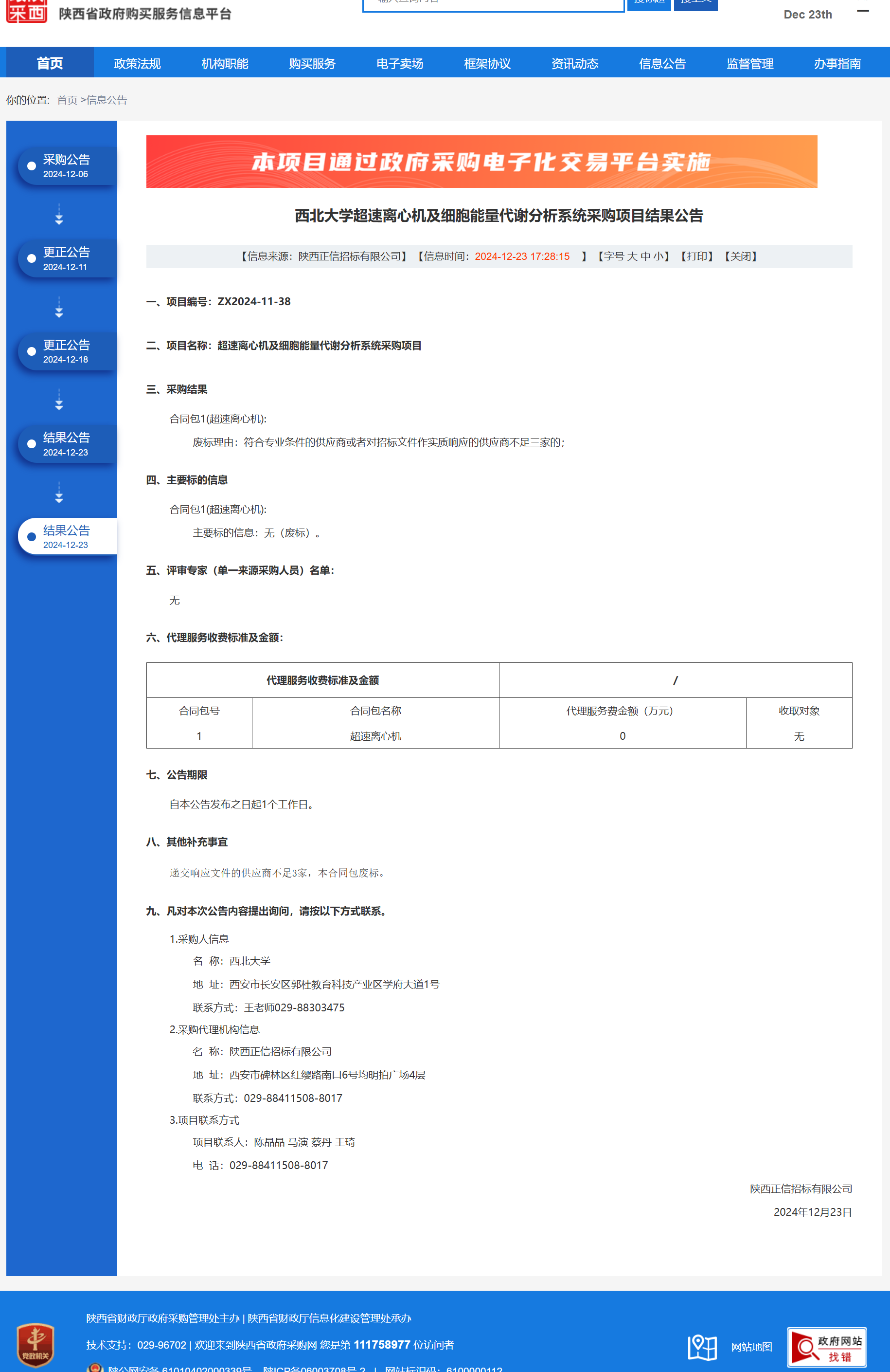 欧冠官方网站超速离心机及细胞能量代谢分析系统采购项目结果公告 作者:采购与招标办公室 编辑: 时间:2024-12-23 原公告链接:https://www.ccgp-shaanxi.gov.cn/freecms/site/shaanxi/ggxx/info/2024/8a69c5a59218576d0193f2b7cd521246.html?noticeType=001006¬iceId=e0b5db84-c111-11ef-8063-08c0eb20c666