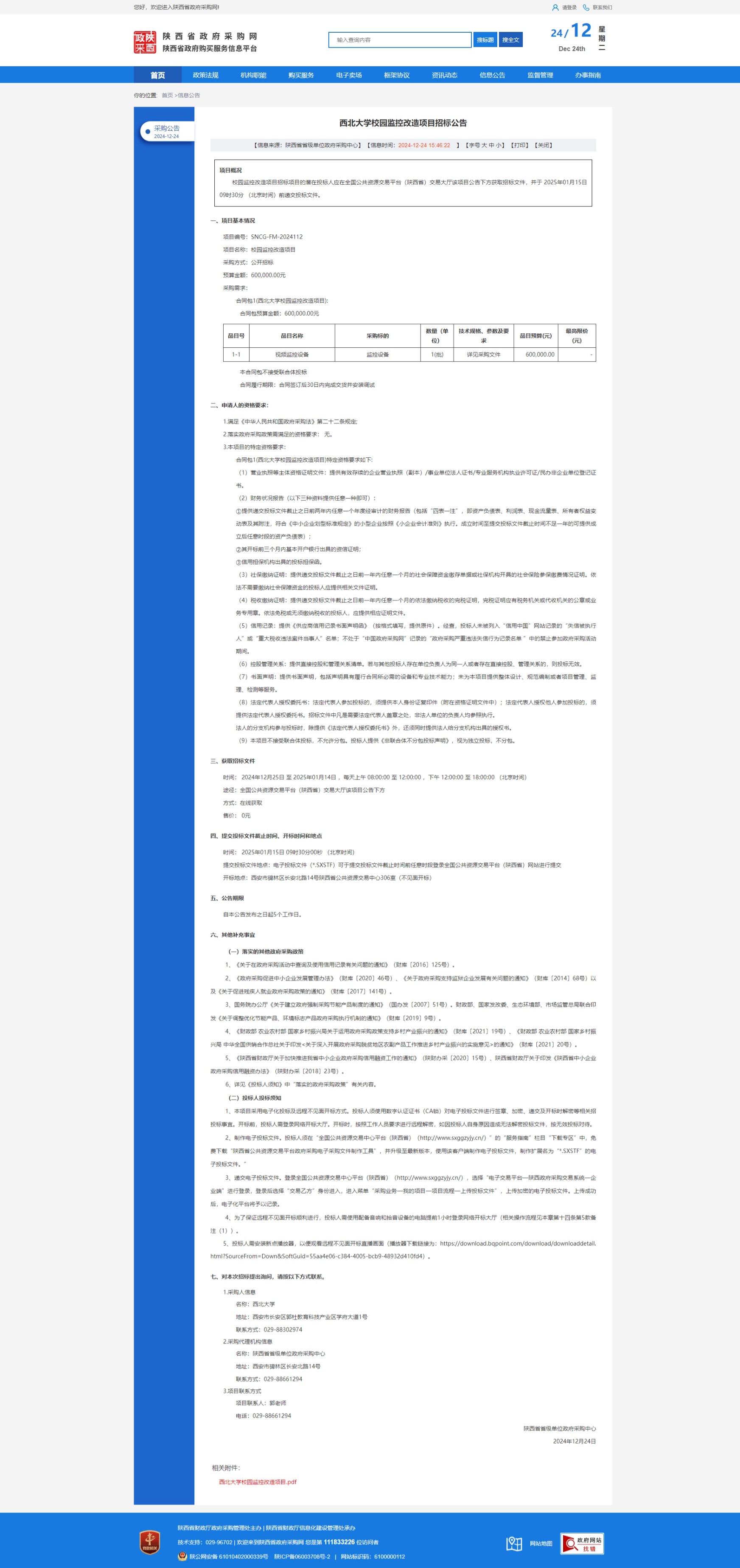 欧冠官方网站校园监控改造项目招标公告 作者: 编辑:薛利娟 时间:2024-12-24 原公告链接:https://www.ccgp-shaanxi.gov.cn/freecms/site/shaanxi/ggxx/info/2024/8a69c95d921859f00193f765d16522d0.html?noticeType=001011¬iceId=d06e0e57-c1cc-11ef-8063-08c0eb20c666
