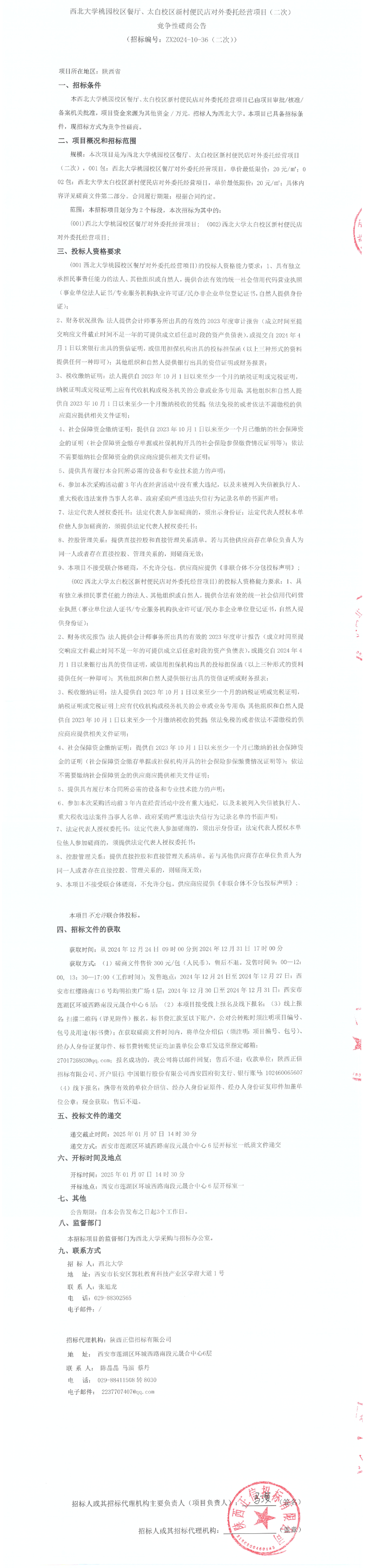 欧冠官方网站桃园校区餐厅、太白校区新村便民店对外委托经营项目(二次)竞争性磋商公告