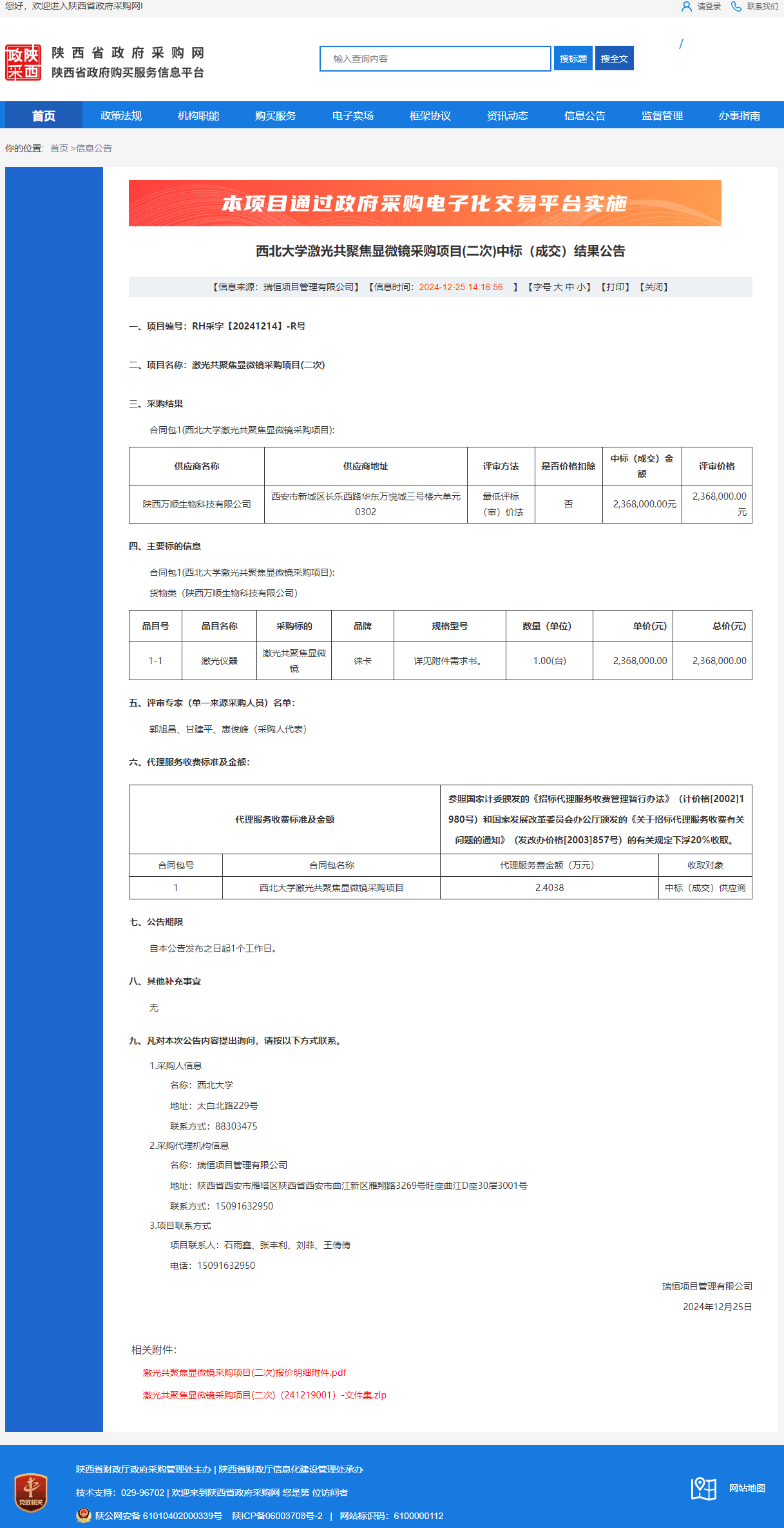 欧冠官方网站激光共聚焦显微镜采购项目(二次)中标(成交)结果公告 作者:采购与招标办公室 编辑: 时间:2024-12-25 原公告链接:http://www.ccgp-shaanxi.gov.cn/freecms/site/shaanxi/ggxx/info/2024/8a69c251921857370193fc6fdab73efc.html