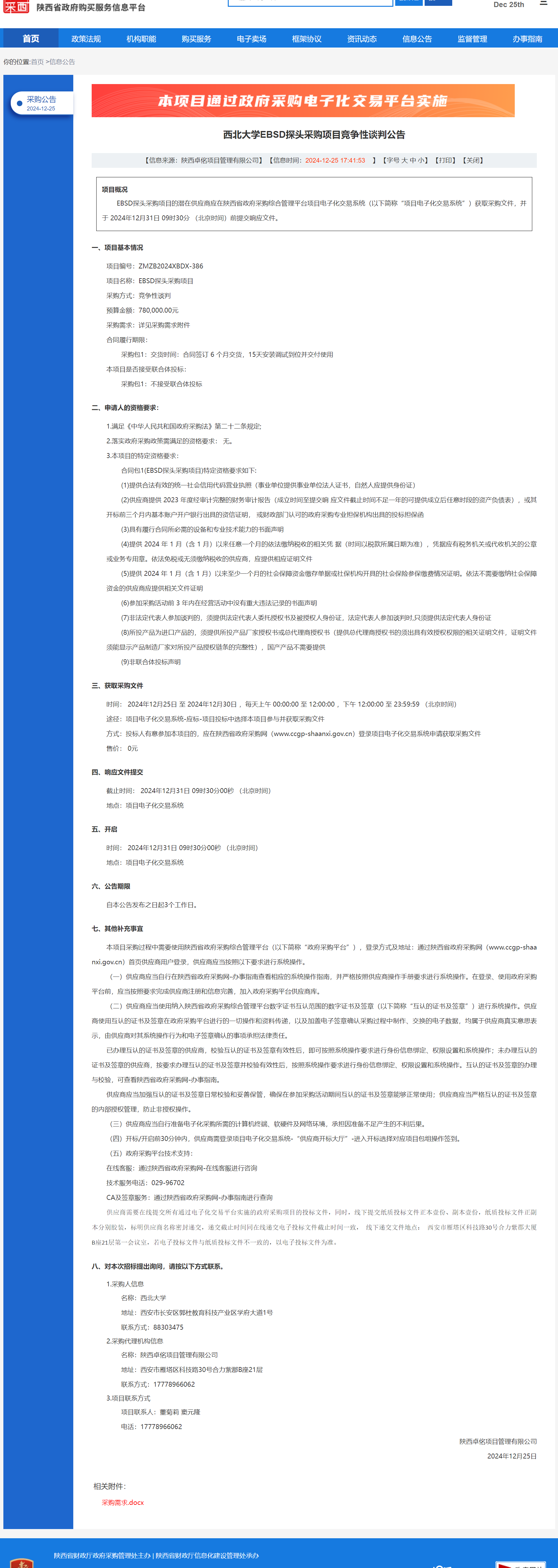 欧冠官方网站EBSD探头采购项目竞争性谈判公告 作者:采购与招标办公室 编辑: 时间:2024-12-25 原公告链接:https://www.ccgp-shaanxi.gov.cn/freecms/site/shaanxi/ggxx/info/2024/8a69c251921857370193fd2ded71224e.html?noticeType=001013¬iceId=1e749fa7-c2a6-11ef-8063-08c0eb20c666