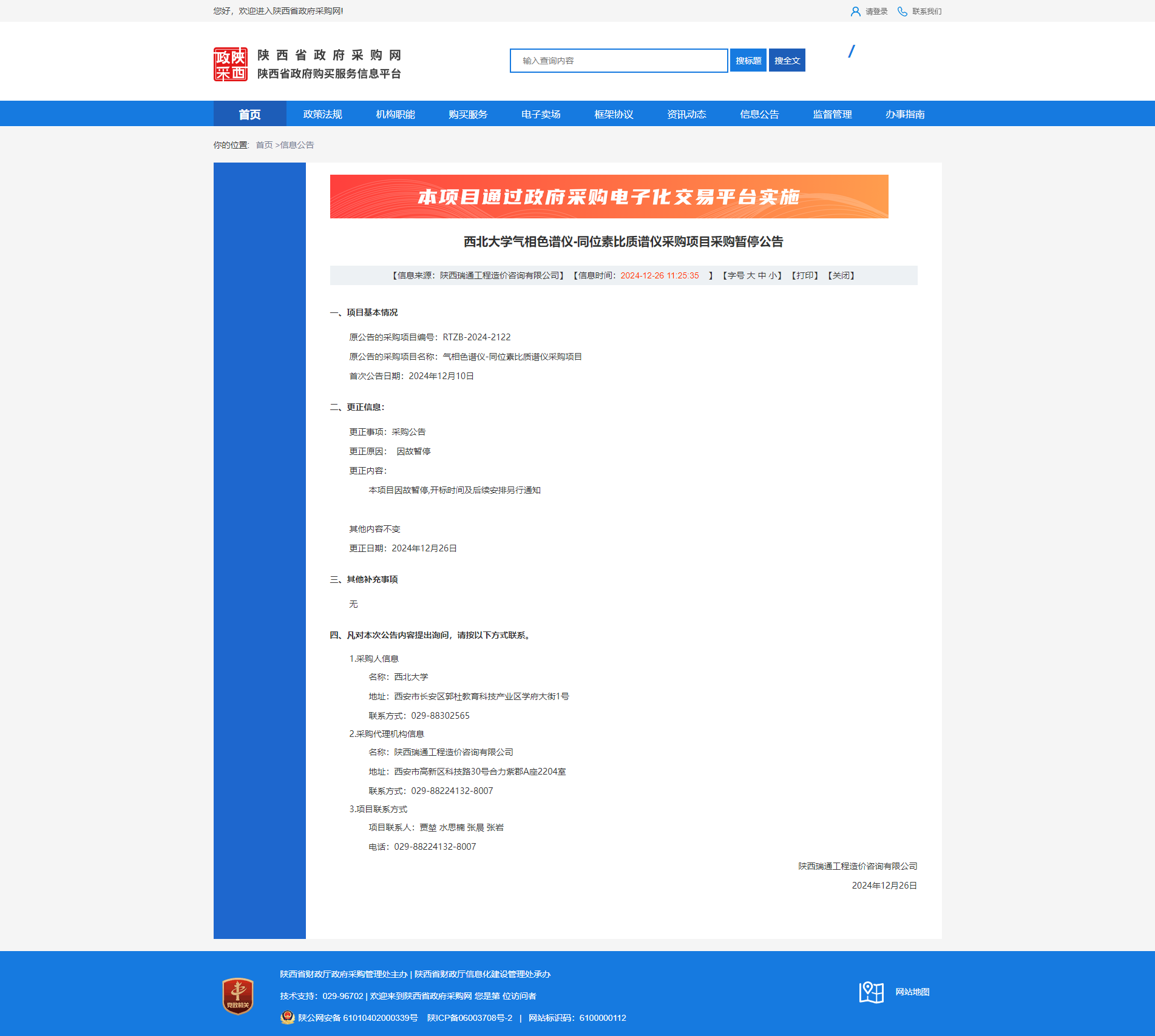 欧冠官方网站气相色谱仪-同位素比质谱仪采购项目采购暂停公告