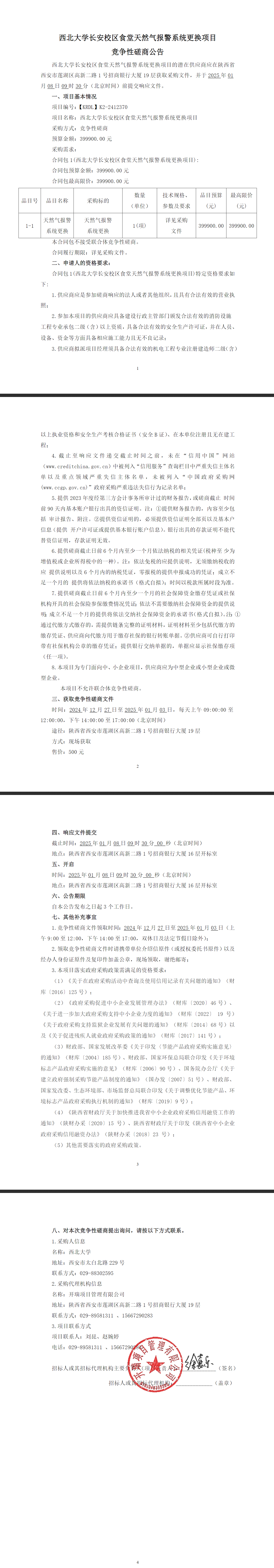欧冠官方网站长安校区食堂天然气报警系统更换项目竞争性磋商公告