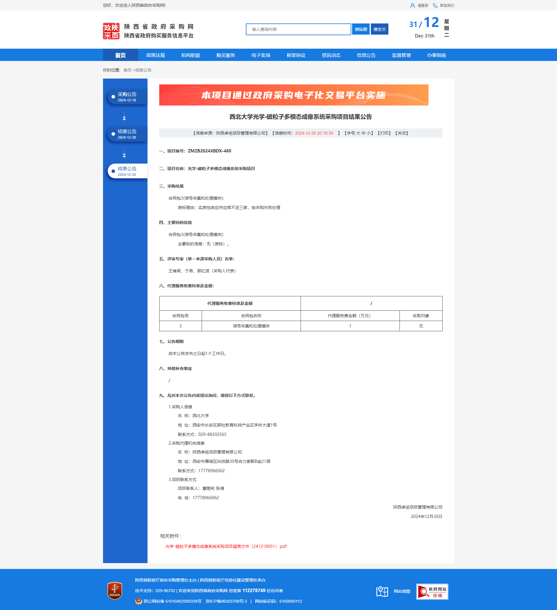 欧冠官方网站光学-磁粒子多模态成像系统采购项目中标(成交)结果公告