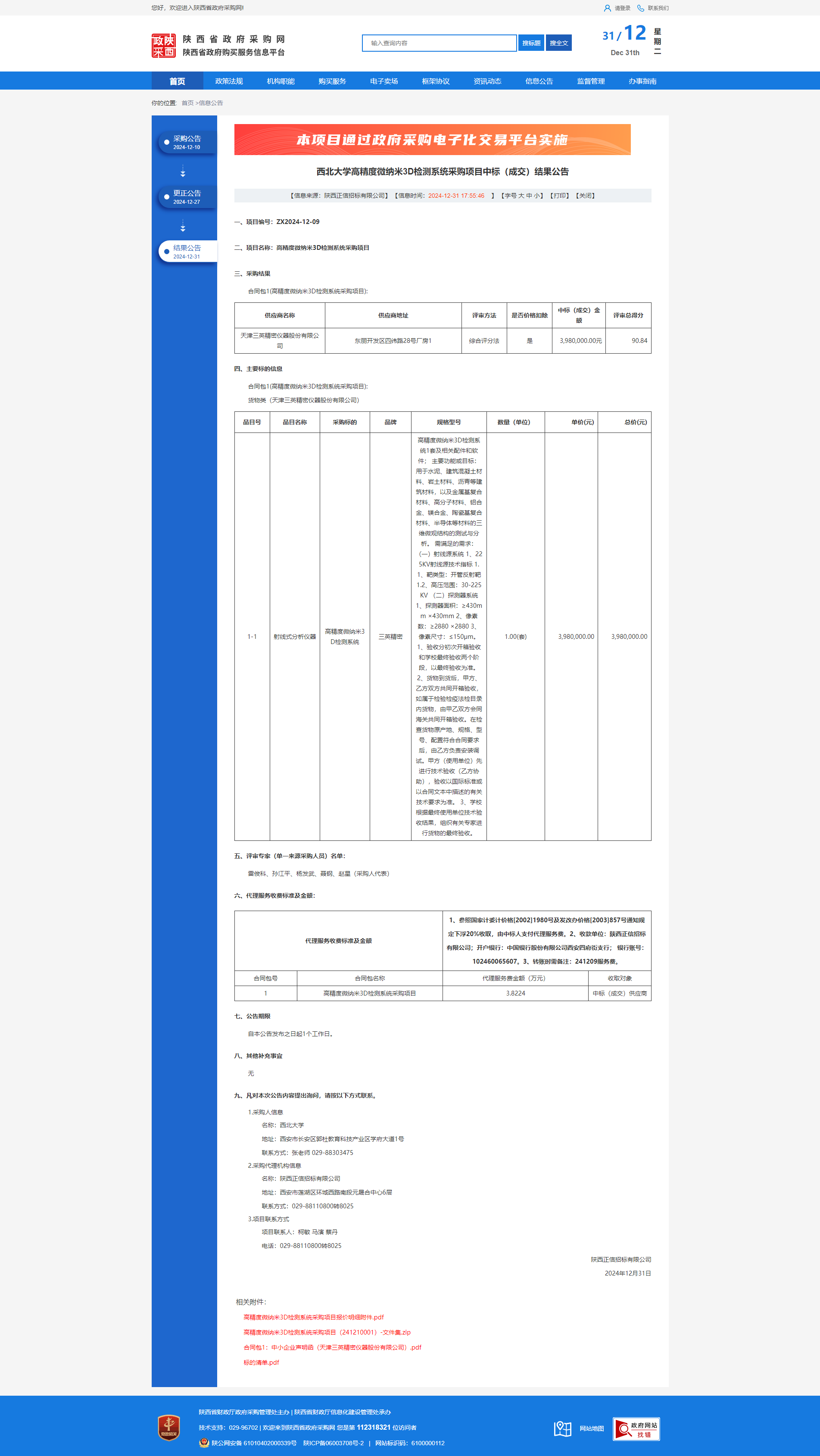 欧冠官方网站高精度微纳米3D检测系统采购项目中标(成交)结果公告