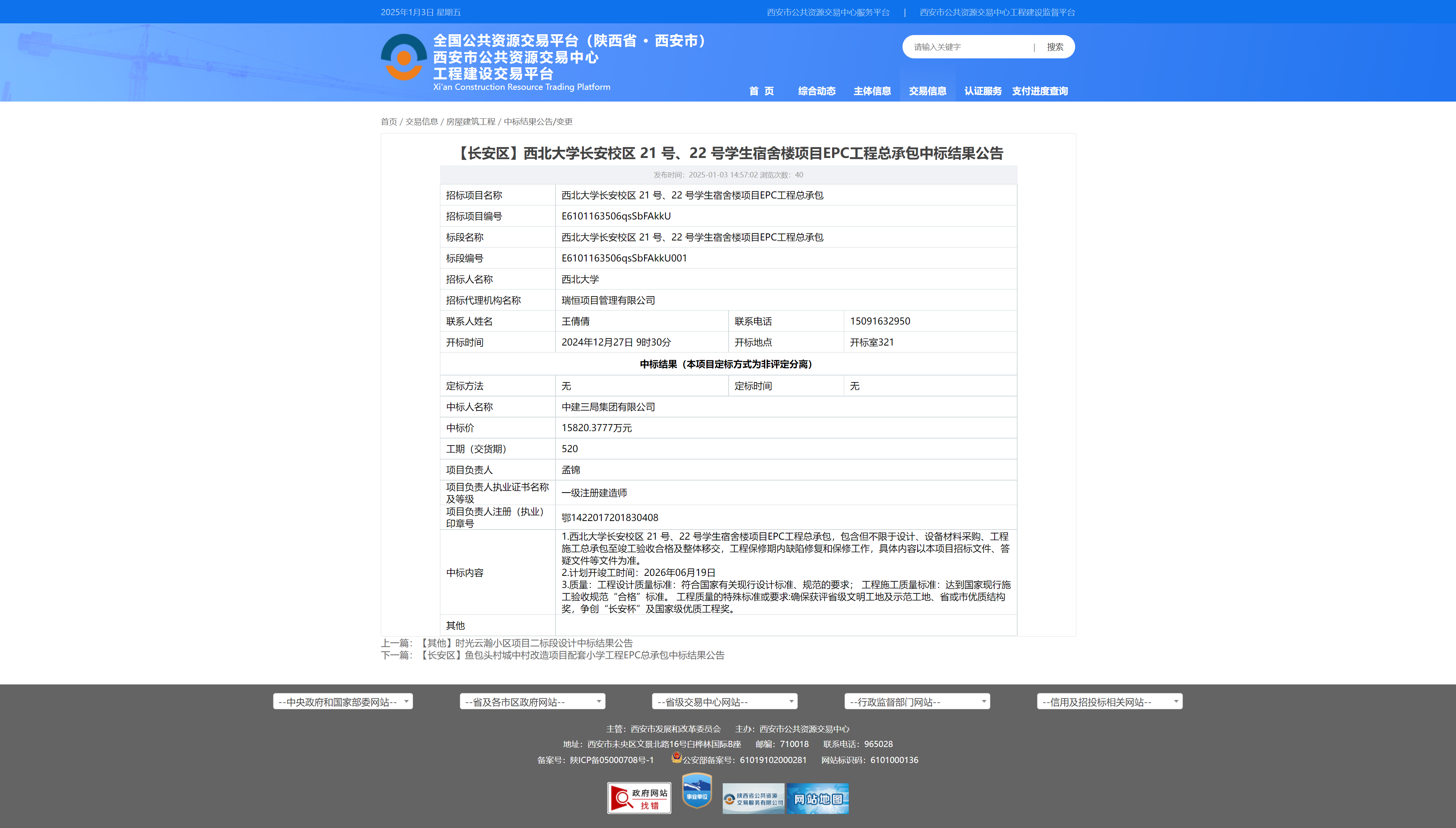 欧冠官方网站长安校区21号、22号学生宿舍楼项目EPC工程总承包中标结果公告