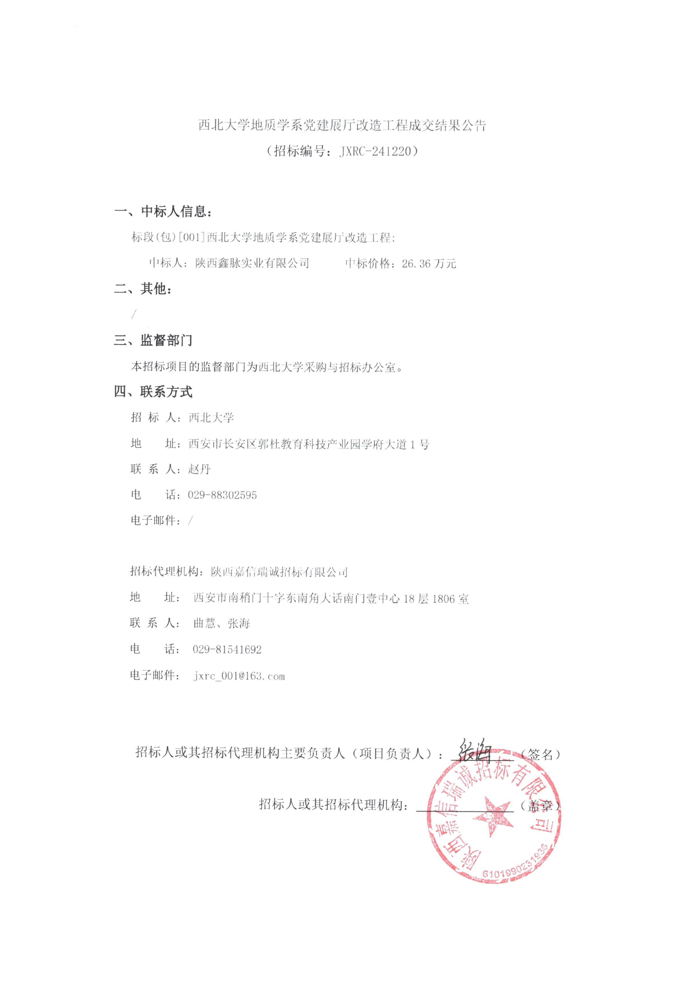 欧冠官方网站地质学系党建展厅改造工程成交结果公告