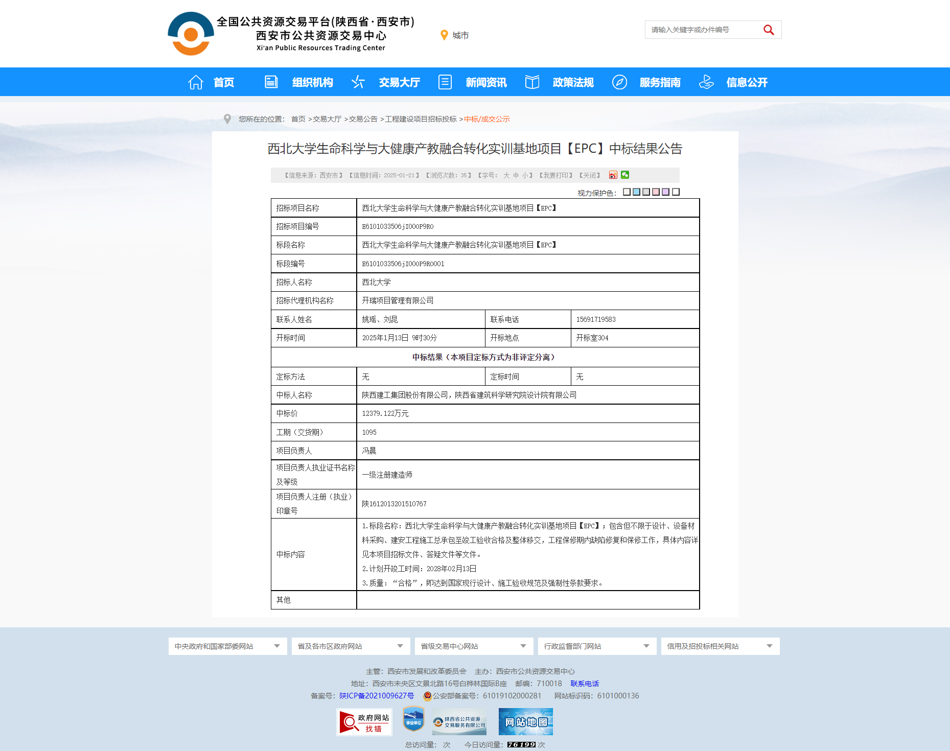 欧冠官方网站生命科学与大健康产教融合转化实训基地项目【EPC】中标结果公告