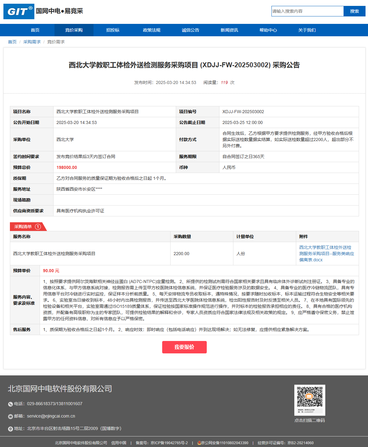 欧冠官方网站教职工体检外送检测服务采购项目 (XDJJ-FW-202503002) 采购公告