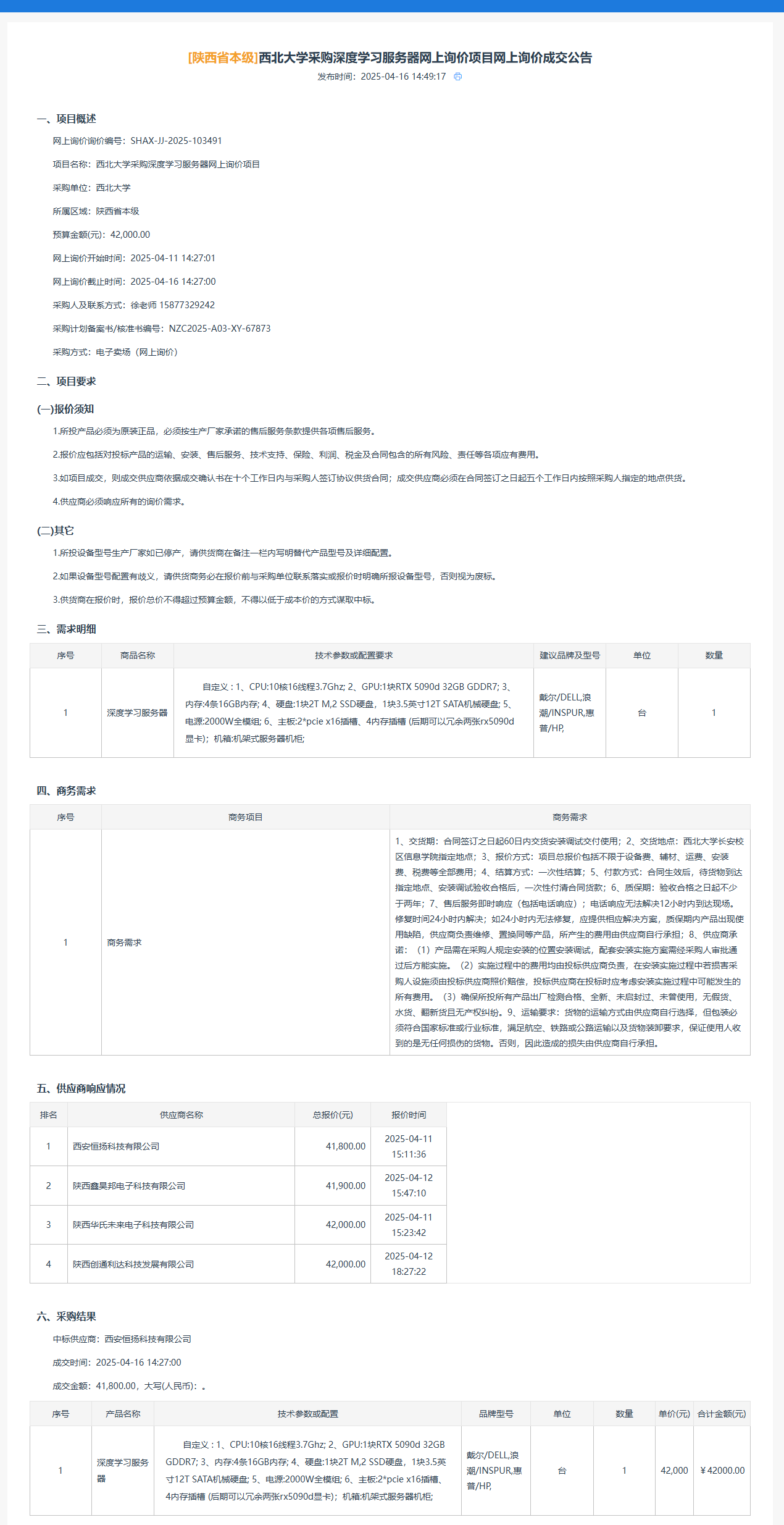 欧冠官方网站采购深度学习服务器网上询价项目网上询价成交公告 作者:采购与招标办公室 编辑: 时间:2025-04-23 原公告链接:https://www.ccgp-shaanxi.gov.cn/gpmall-main-web/basic/noticeDetail?noticeGuid=7311545629157818368