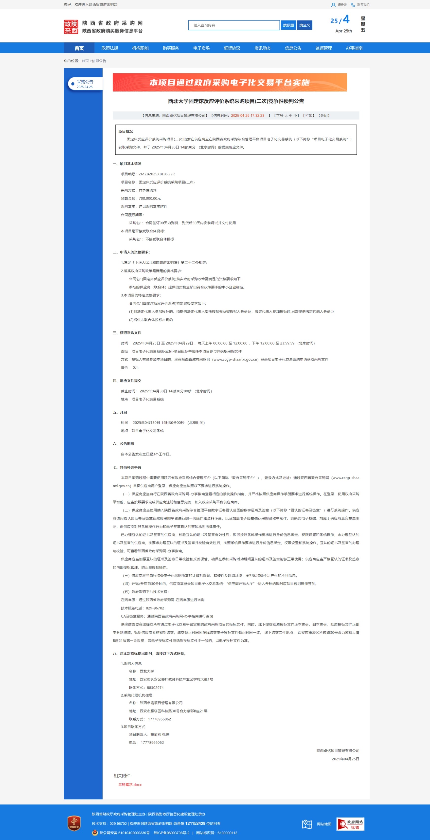 欧冠官方网站固定床反应评价系统采购项目(二次)竞争性谈判公告 作者: 编辑:采购与招标办公室 时间:2025-04-25 原公告链接:https://www.ccgp-shaanxi.gov.cn/freecms/site/shaanxi/ggxx/info/2025/8a69c09c9615f8f001966c3e6a1514fe.html?noticeType=001013¬iceId=1066d8f0-21ba-11f0-8063-08c0eb20c666