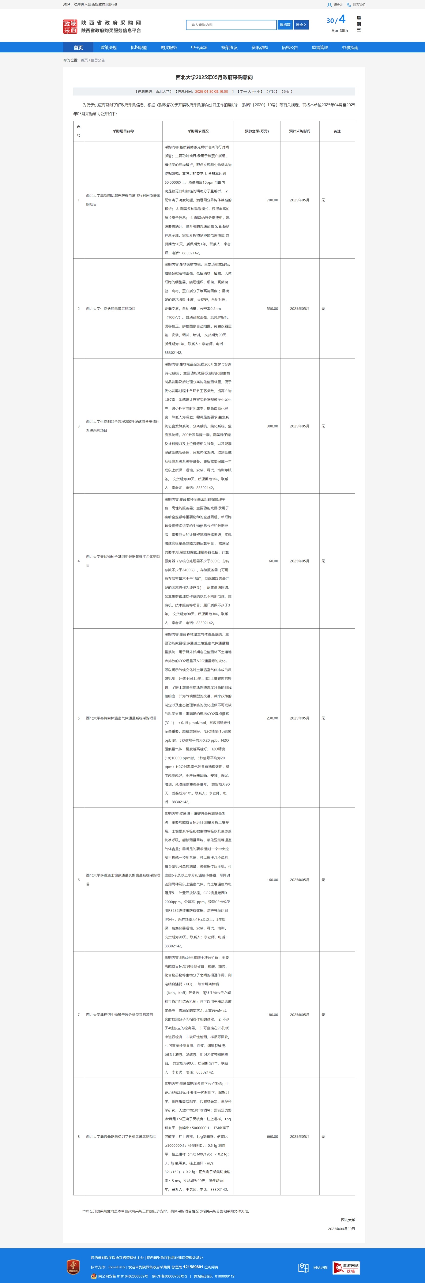 欧冠官方网站2025年05月政府采购意向(生命科学学院) 作者: 编辑:采购与招标办公室 时间:2025-04-30 原公告链接:https://www.ccgp-shaanxi.gov.cn/freecms/site/shaanxi/ggxx/info/2025/8a69c1879656b6c301967b16d4213330.html?noticeType=59¬iceId=2c5b777a-255a-11f0-8063-08c0eb20c666
