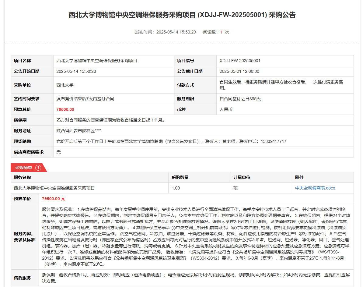 欧冠官方网站博物馆中央空调维保服务采购项目(XDJJ-FW-202505001)竞价采购公告 作者:采购与招标办公室 编辑: 时间:2025-05-14 原公告链接:https://www.ejingcai.com.cn/site/bidding/detail/18217
