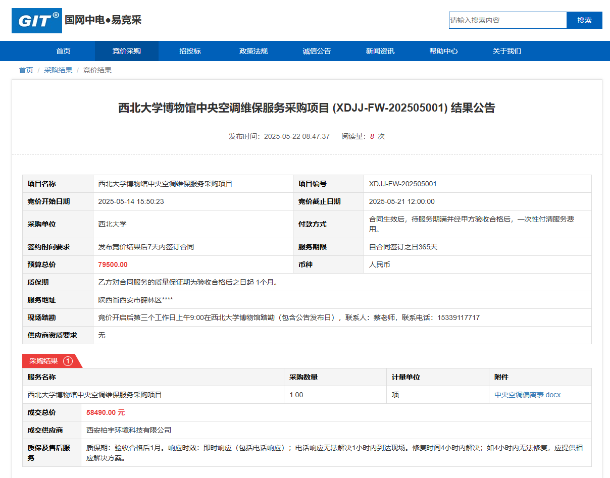 欧冠官方网站博物馆中央空调维保服务采购项目(XDJJ-FW-202505001)竞价结果公告 作者:采购与招标办公室 编辑: 时间:2025-05-22 原公告链接:https://www.ejingcai.com.cn/site/bidding/detail/18384