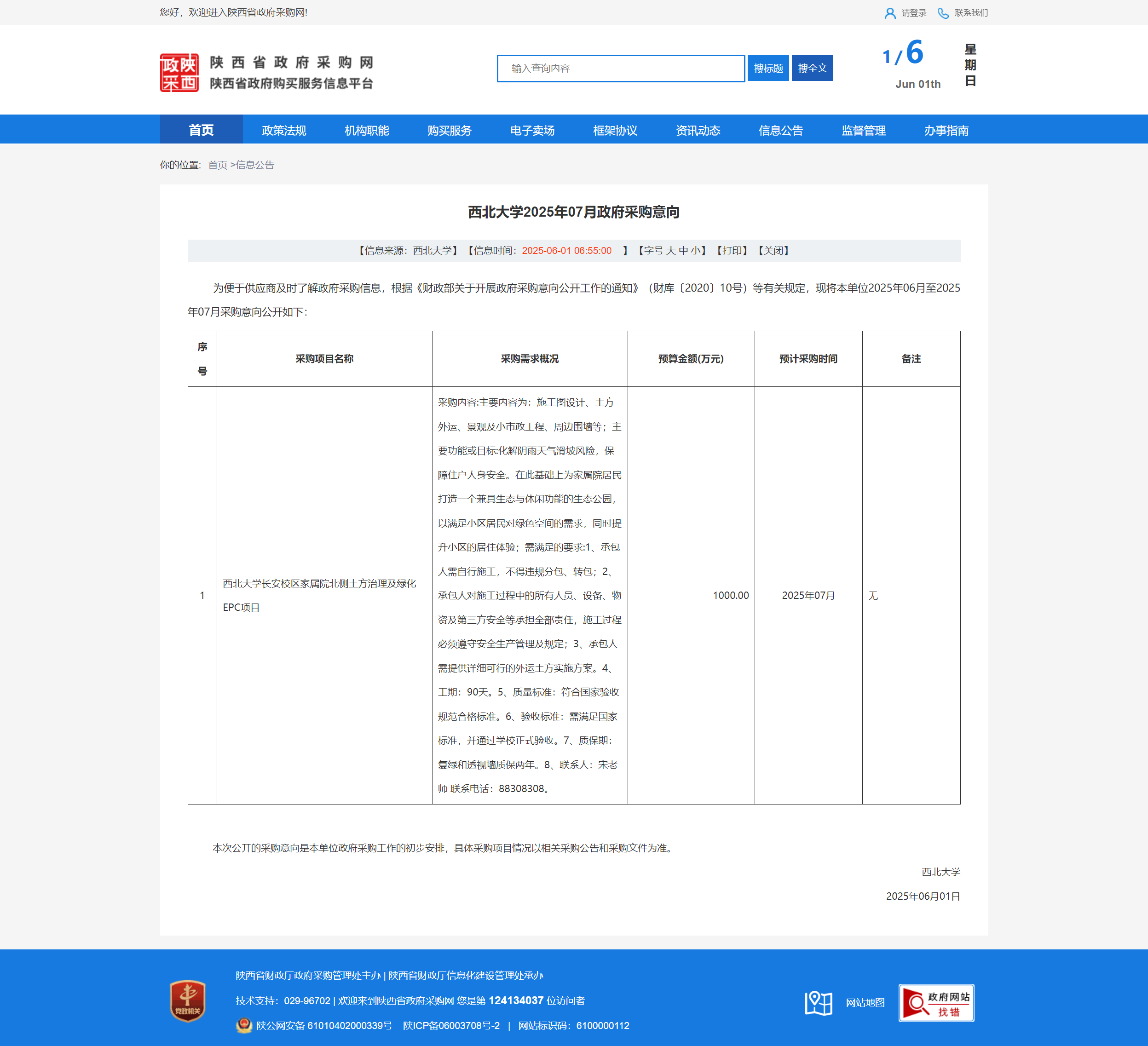 欧冠官方网站2025年07月政府采购意向(化工学院等)