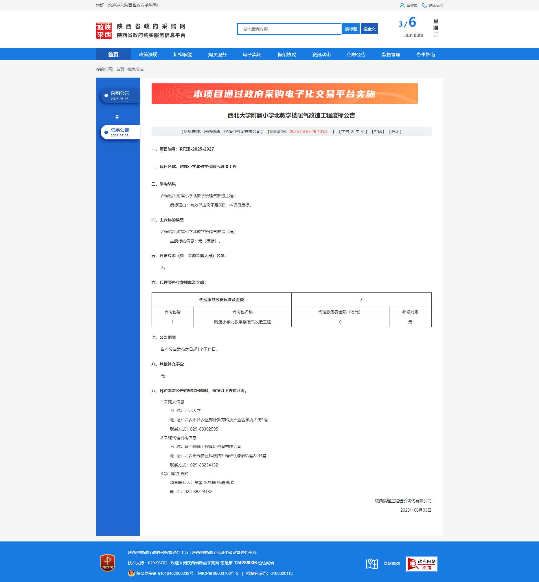 欧冠官方网站附属小学北教学楼暖气改造工程废标公告