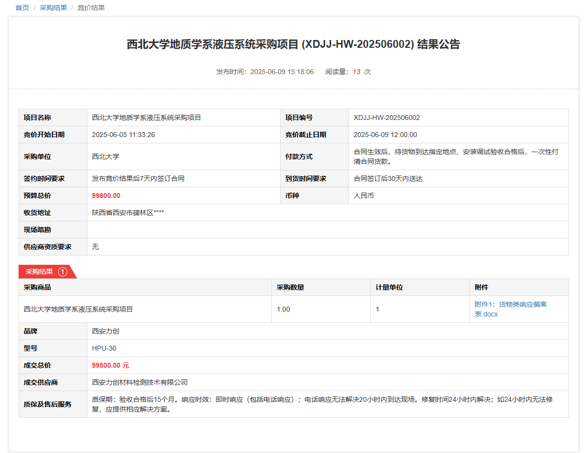 欧冠官方网站地质学系液压系统采购项目(XDJJ-HW-202506002)竞价结果公告 作者:采购与招标办公室 编辑: 时间:2025-06-09 原公告链接:https://www.ejingcai.com.cn/site/bidding/detail/18744