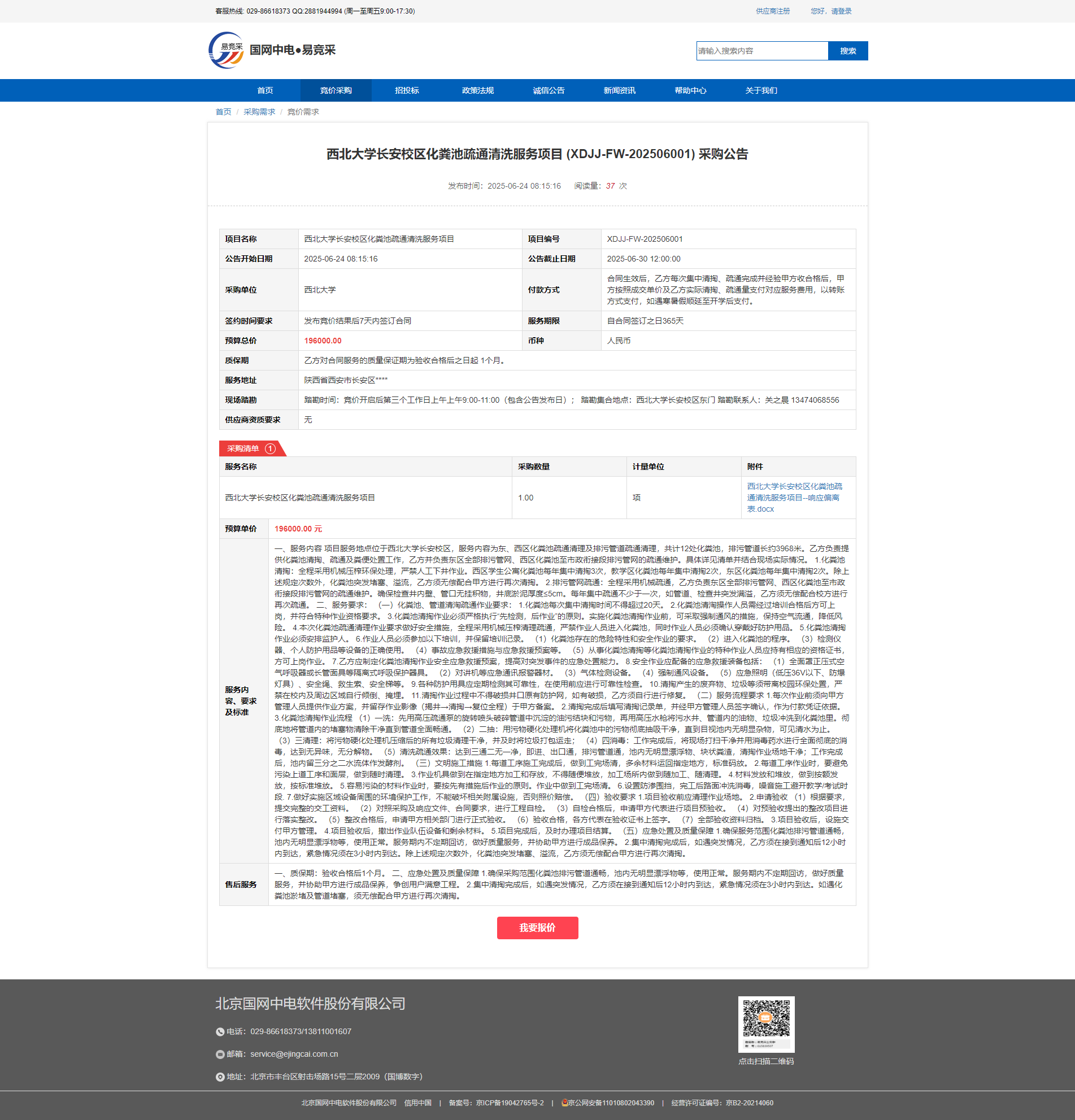 欧冠官方网站长安校区化粪池疏通清洗服务项目 (XDJJ-FW-202506001) 采购公告