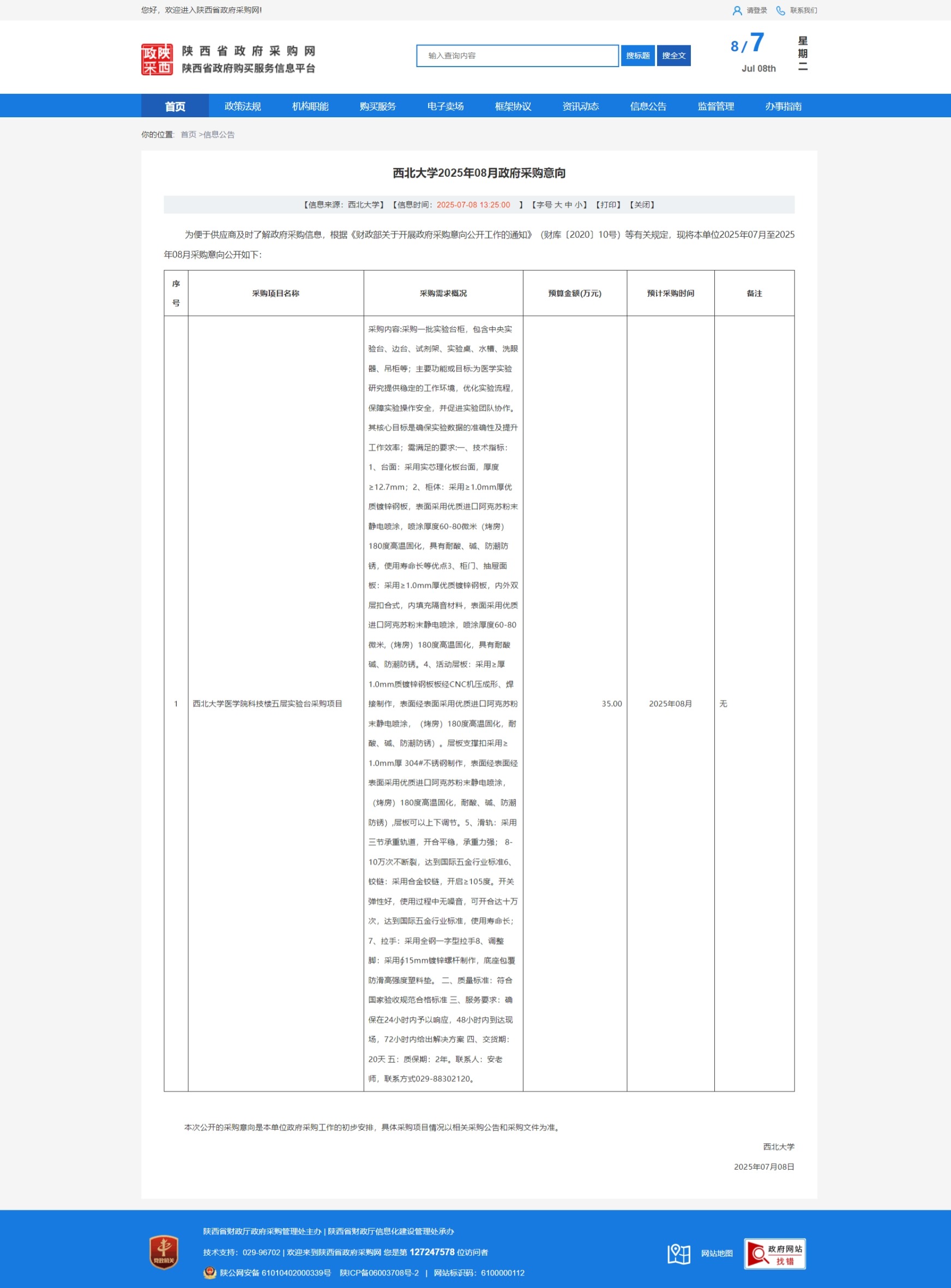 欧冠官方网站2025年08月政府采购意向 作者: 编辑:采购与招标办公室 时间:2025-07-08 原公告链接:https://www.ccgp-shaanxi.gov.cn/freecms/site/shaanxi/ggxx/info/2025/8a69c68d97d2c4550197e87d6842455f.html?noticeType=59¬iceId=e4cb9cdd-5bbd-11f0-8063-08c0eb20c666