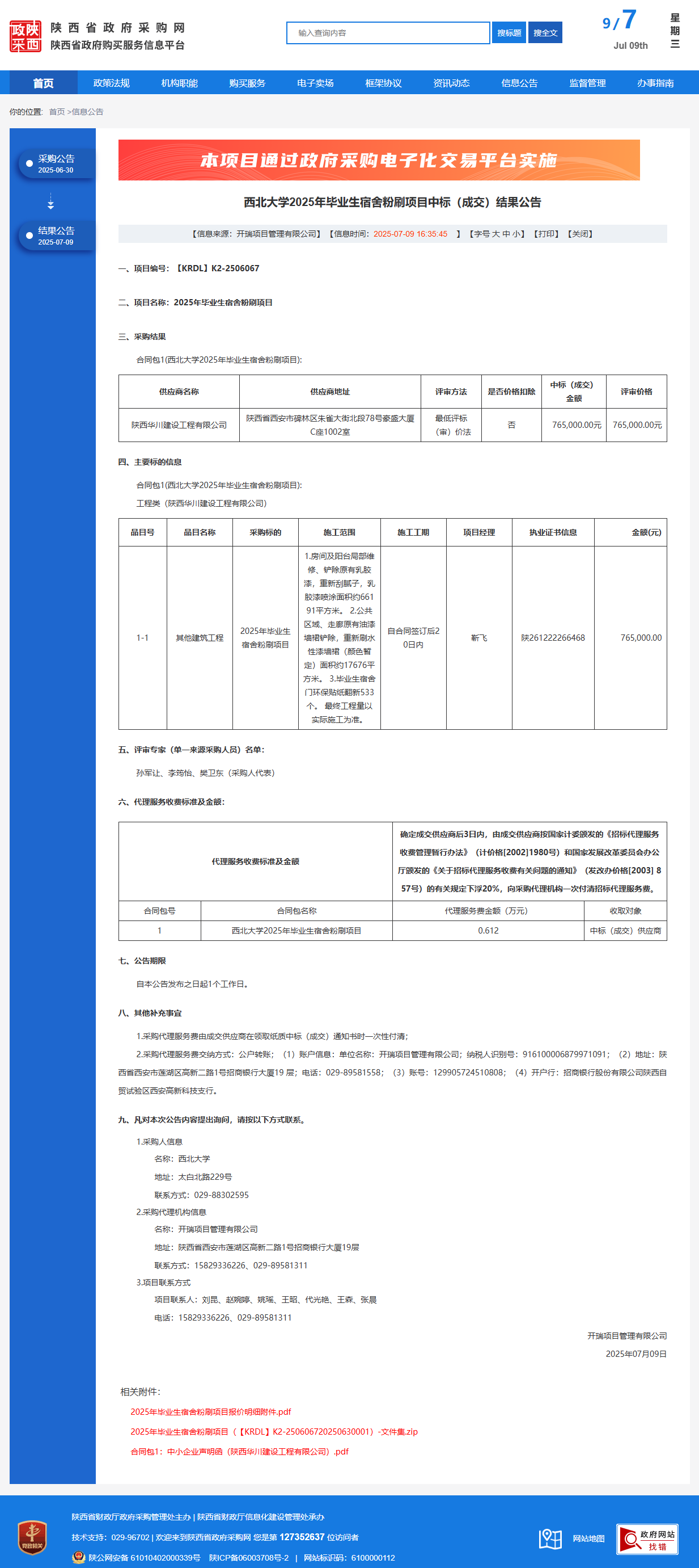 欧冠官方网站2025年毕业生宿舍粉刷项目中标(成交)结果公告