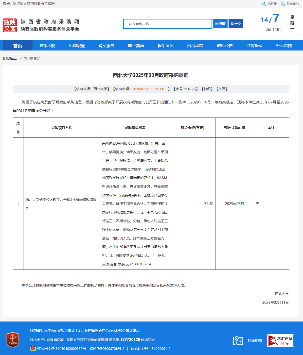欧冠官方网站2025年08月政府采购意向