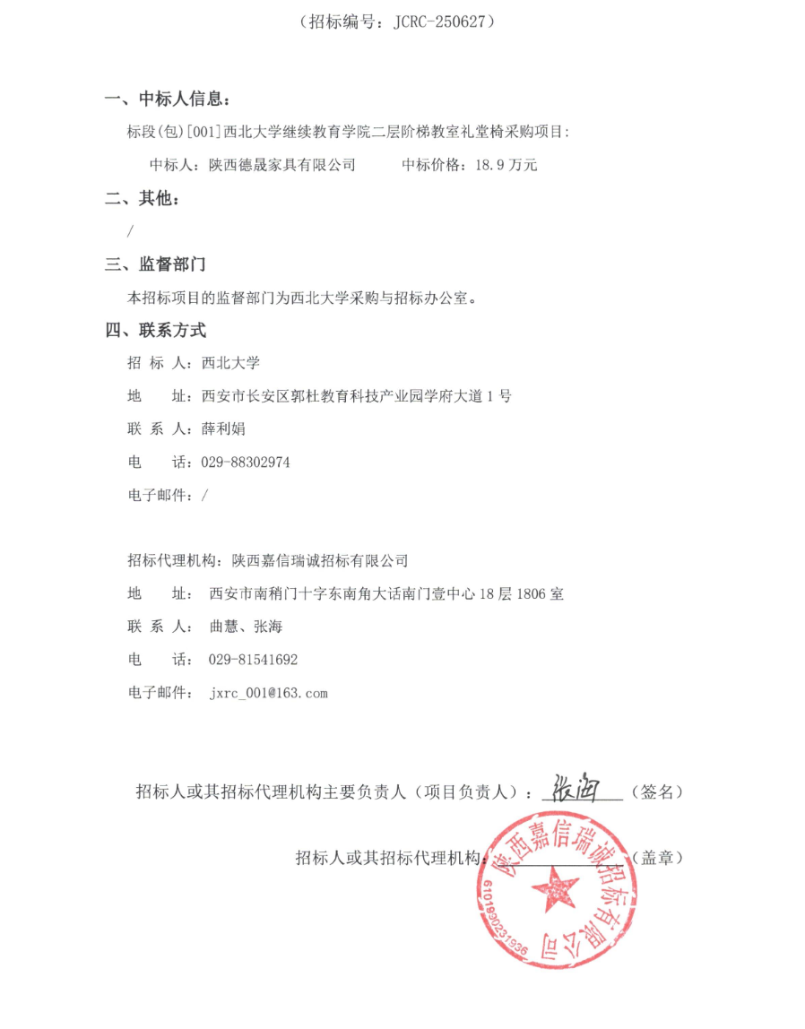 欧冠官方网站继续教育学院二层阶梯教室礼堂椅采购项目成交结果公告 作者: 编辑:采购与招标办公室 时间:2025-07-14 原公告链接:http://bulletin.sntba.com/resultBulletin/2025-07-14/2078964.html