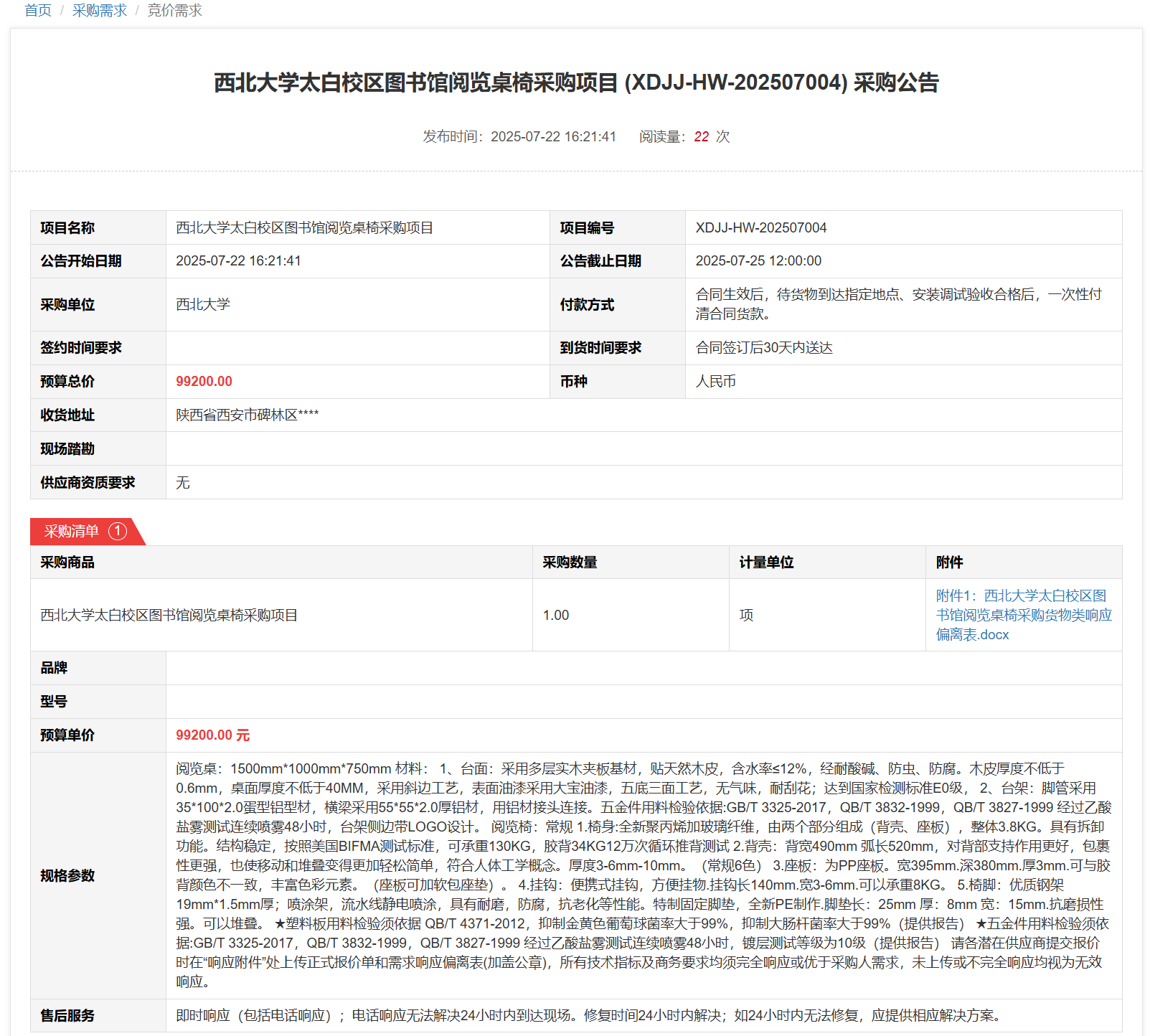 欧冠官方网站太白校区图书馆阅览桌椅采购项目(XDJJ-HW-202507004)竞价采购公告 作者:采购与招标办公室 编辑: 时间:2025-07-22 原公告链接:https://www.ejingcai.com.cn/site/bidding/detail/19667