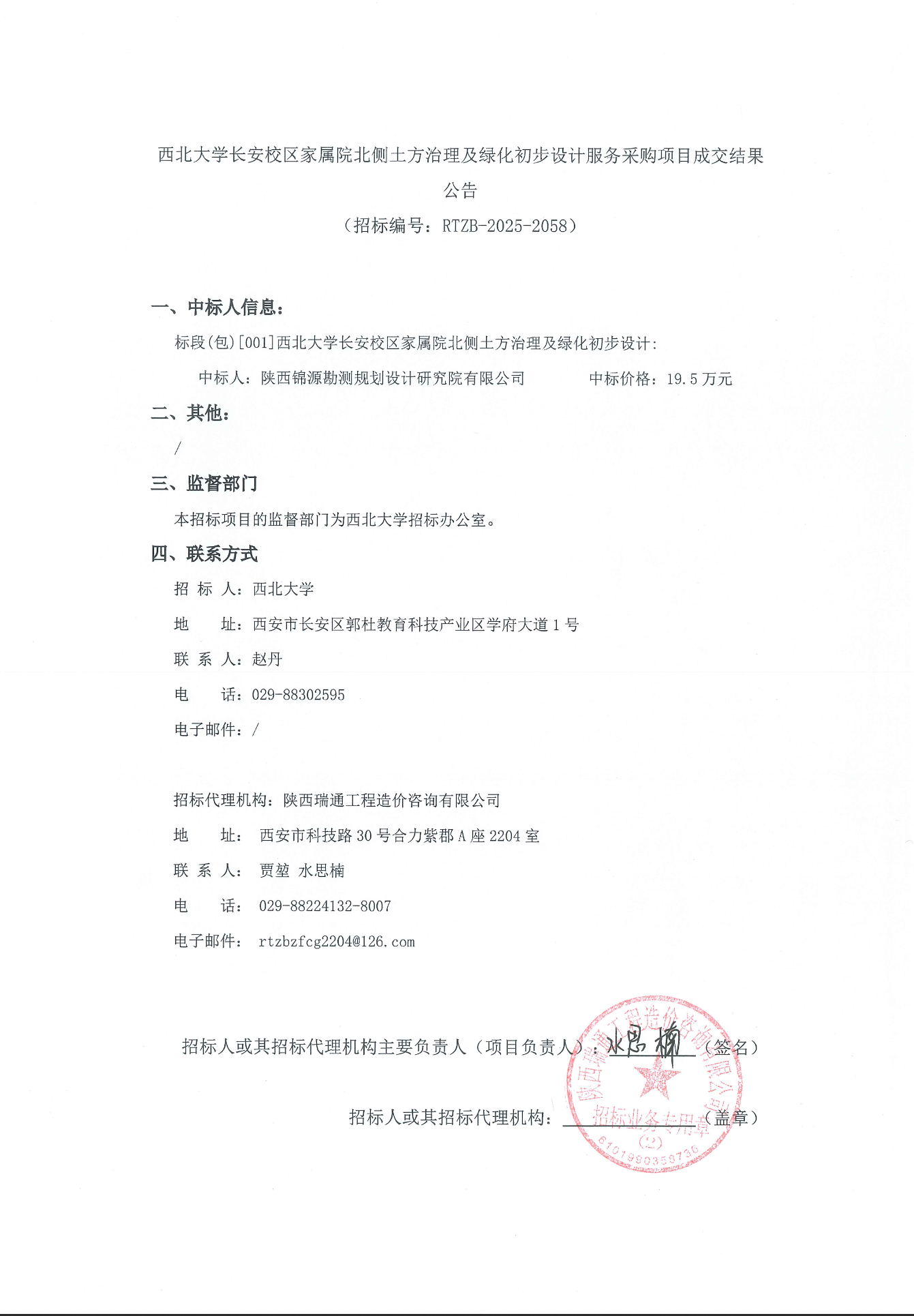 欧冠官方网站长安校区家属院北侧土方治理及绿化初步设计服务采购项目成交结果公告