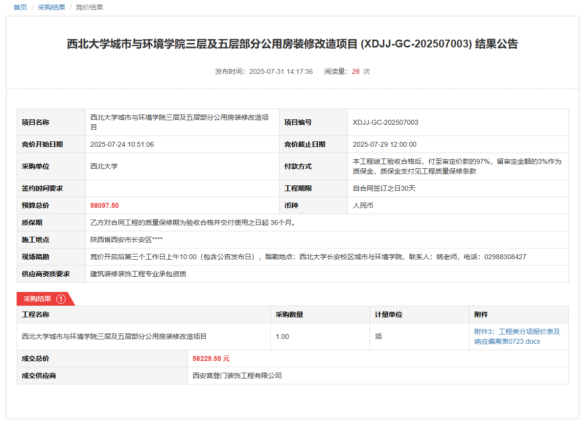 欧冠官方网站经济管理学院mba9804班智慧教室设备采购项目 (XDJJ-HW-202507005) 竞价结果公告