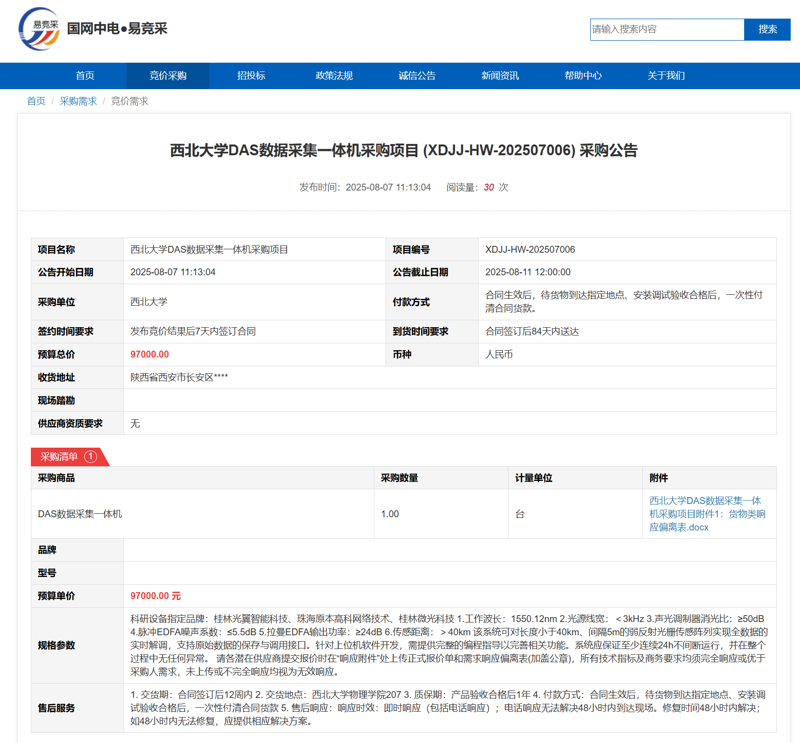 欧冠官方网站DAS数据采集一体机采购项目(XDJJ-HW-202507006)竞价采购公告