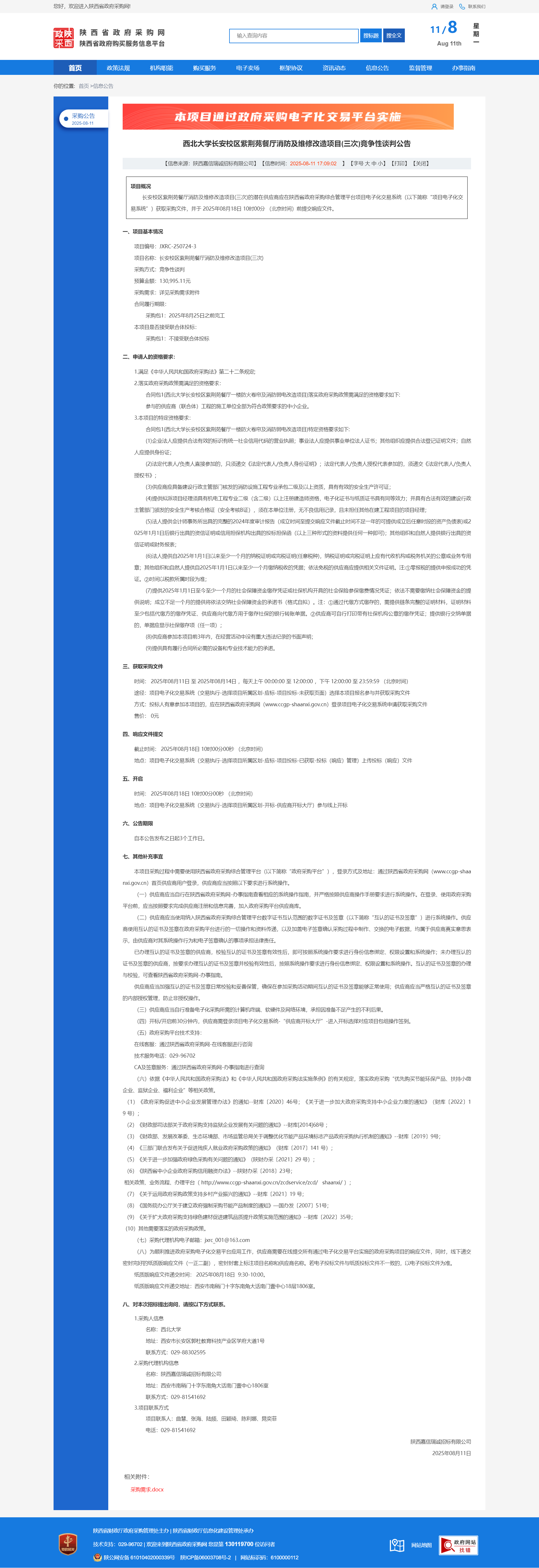 欧冠官方网站长安校区紫荆苑餐厅消防及维修改造项目(三次)竞争性谈判公告