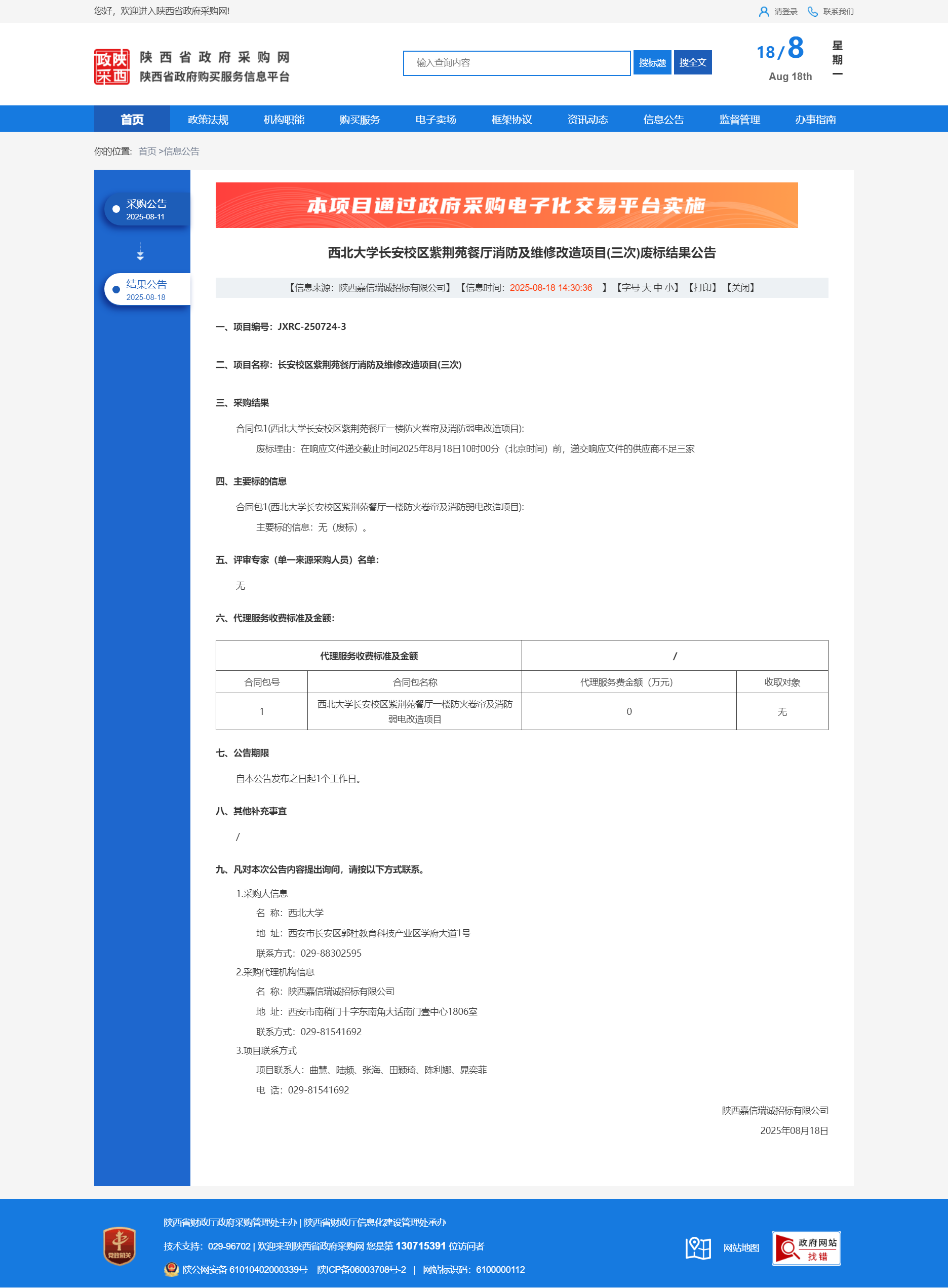 欧冠官方网站长安校区紫荆苑餐厅消防及维修改造项目(三次)废标结果公告