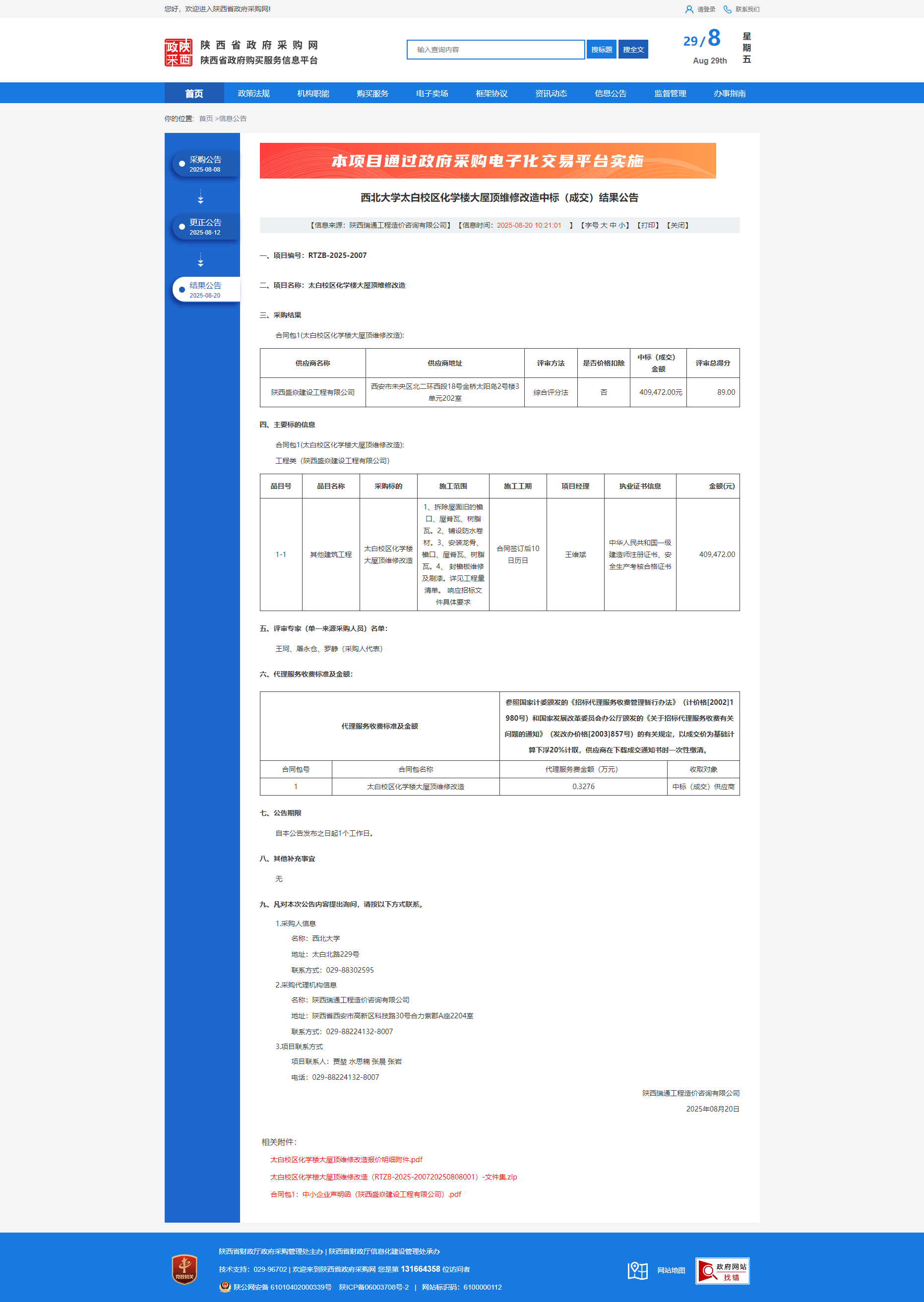 欧冠官方网站太白校区化学楼大屋顶维修改造中标(成交)结果公告