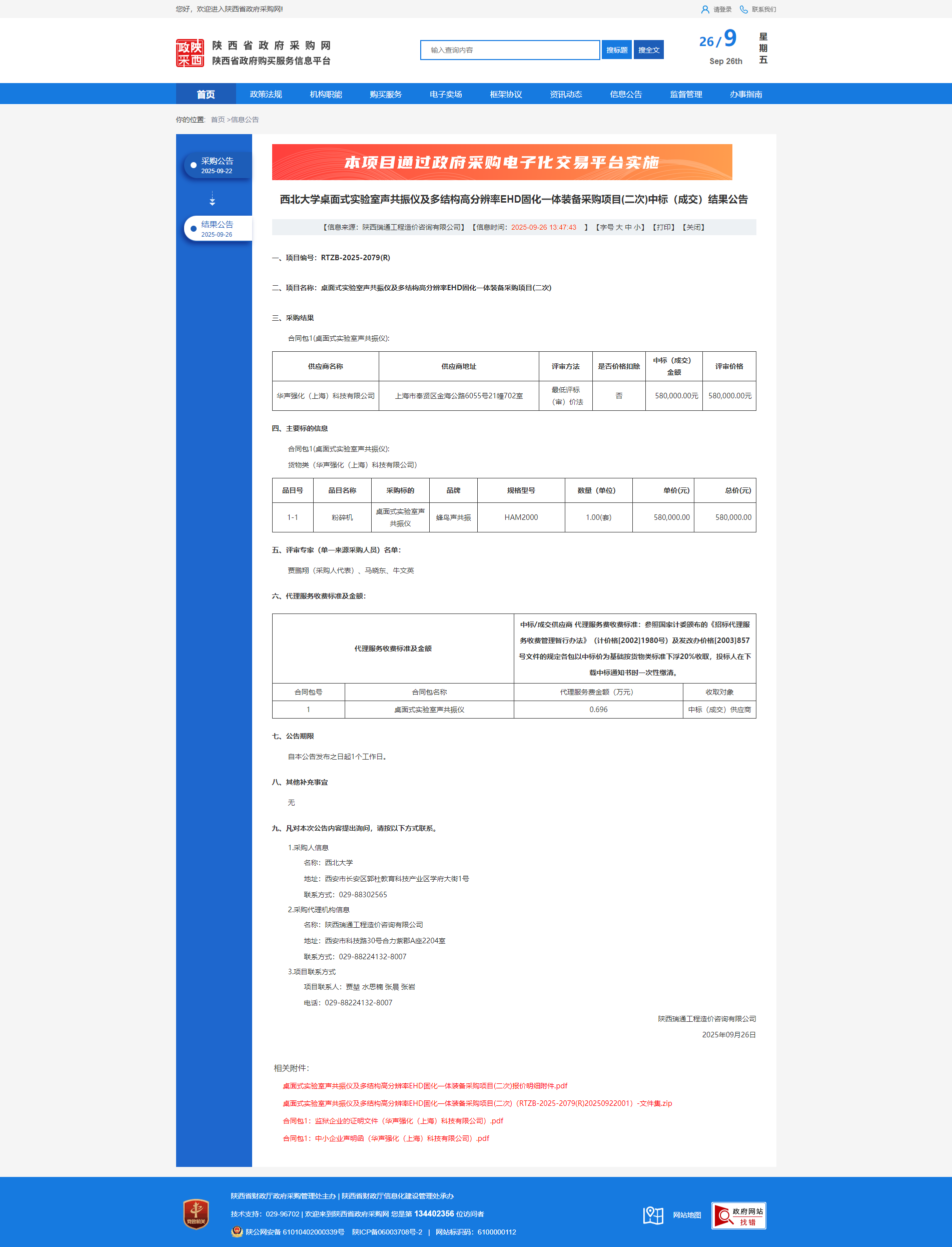 欧冠官方网站桌面式实验室声共振仪及多结构高分辨率EHD固化一体装备采购项目(二次)中标(成交)结果公告