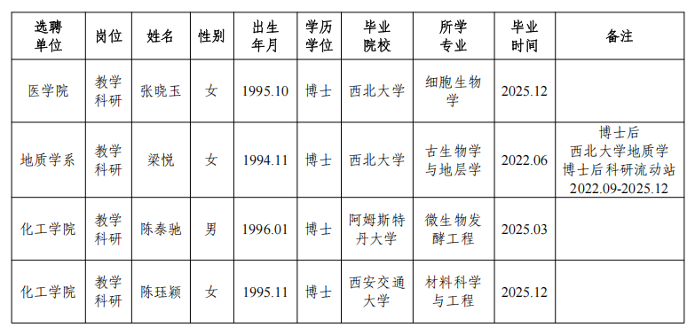 经资格审查,用人单位考查,学校专家评审会审议,欧冠拟确定下列人员来校工作,聘任方式为参编选聘。本着公平、公正、公开的原则,现将本次拟选聘人员基本情况公示如下: