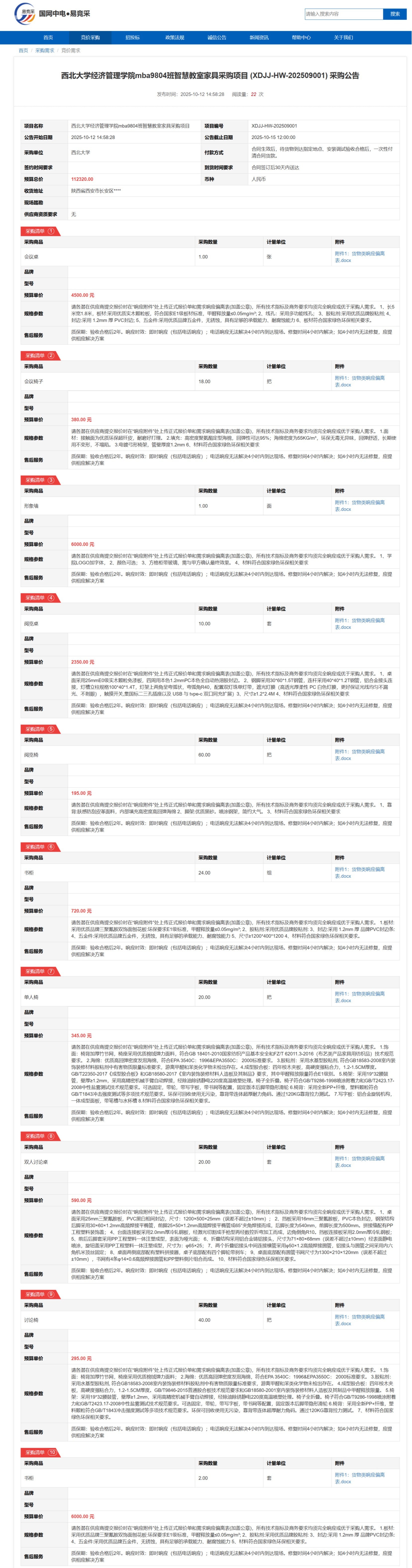 欧冠官方网站经济管理学院mba9804班智慧教室家具采购项目(XDJJ-HW-202509001)竞价采购公告
