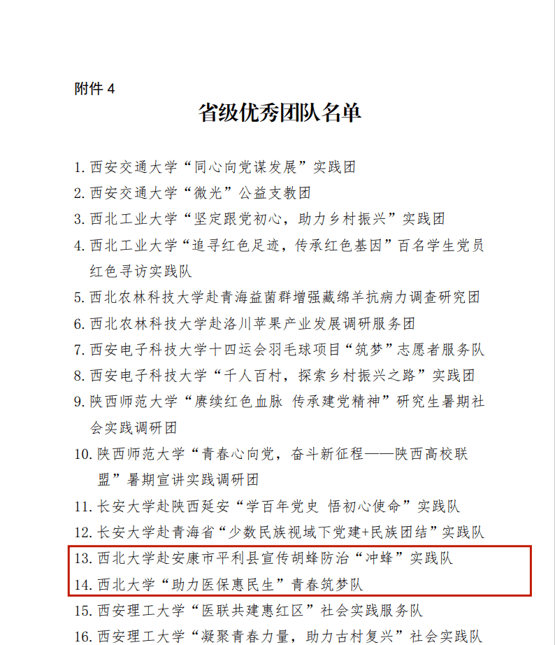 近日,中共陕西省委宣传部、中共陕西省委文明办、中共陕西省委教育工委、共青团陕西省委、陕西省学生联合会印发《关于2021年陕西省大中专学生志愿者暑期文化科技卫生“三下乡”社会实践活动先进集体、先进个人的通报》,欧冠官方网站荣获2021年“三下乡”省级示范学校荣誉称号。经济管理学院“奋斗百年路启航新征程百村千户行”社会实践团荣获“省级标兵团队”荣誉称号。生命科学学院赴安康市平利县宣传胡蜂防治“冲蜂”实践队、公共管理学院“助力医保惠民生”青春筑梦队荣获“省级优秀团队”荣誉称号。欧冠官方网站翟绍果、范铭沁、张桥三位老师荣获“省级先进个人”荣誉称号。