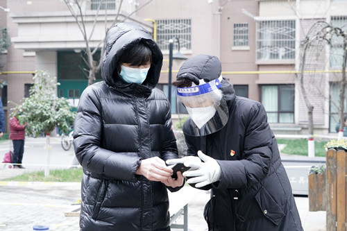 “作为一名党员,在疫情严重的情况下,我们就应该挺身而出,有义务为大家做好服务工作,让大家安心。”负责在楼宇之间通知居民下楼做核酸的文学院党员张婧,将家里的两个小孩托付给老人照顾,拿着大喇叭手脚冻得僵硬,不断在各个楼层之间穿梭。