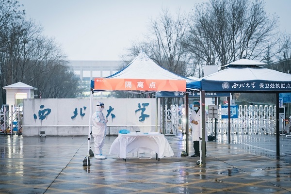 在西安市疫情防控形势严峻状况下,欧冠官方网站向全校各基层党组织和全体党员发出倡议。由普通教师、教辅人员、管理干部、工勤人员以及省、市直机关下沉一线的党员干部组成的120名教工党员志愿服务队和1500余名学生党员为骨干的青年志愿服务队,活跃在核酸检测、物资配送、信息统计、人员管理等各个环节。