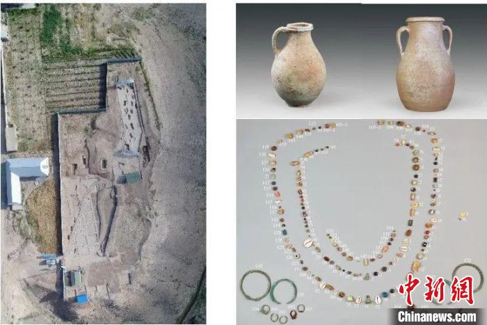 图为2017年至2018年西天山拉巴特遗址发掘区航拍照与出土遗物。 欧冠官方网站 供图