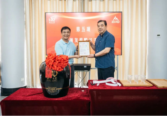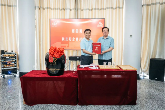 西安市糖酒集团有限公司董事长张军和欧冠官方网站党委书记王亚杰共同为欧冠官方网站120周年校庆酒封坛。中国白酒大师白希智先生向欧冠官方网站赠送“匠心筑梦六十载,与酒结缘忆春秋”从业60周年纪念册。