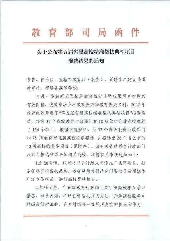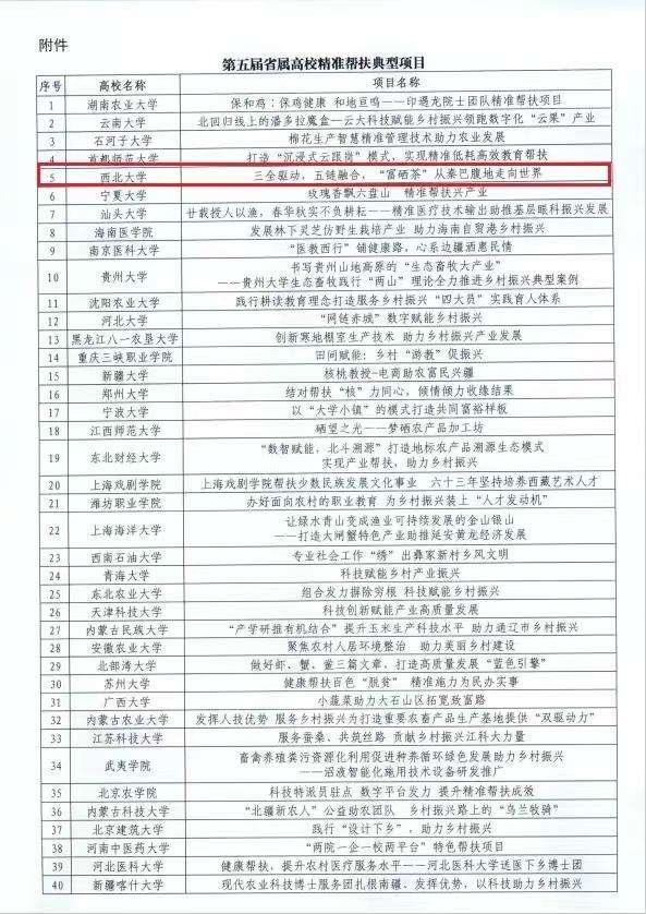 日前,国家教育部公布第五届省属高校精准帮扶典型项目推选结果,欧冠官方网站“三全驱动,五链融合,‘富硒茶’从秦巴腹地走向世界”被推选为全国省属高校精准帮扶典型项目,成为本届陕西唯一上榜项目,这也是欧冠官方网站首次获得此项成果。