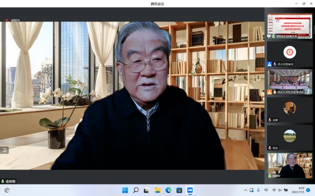 11月6日上午,年会举行主题报告及闭幕式。上半场主题报告上,南京大学数字经济与管理学院任保平教授以《现代化新历史起点上的经济高质量发展》为题、四川大学经济学院院长蒋永穆教授以《中国共产党百年中国式现代化道路探索的历史经验》为题、四川大学经济学院张衔教授以《市场调解的双重性与共同富裕》为题、广东外语外贸大学原副校长董小麟教授以《论新发展格局构建中的三重基本关系》为题、西南财经大学经济学院院长盖凯程教授以《数字经济、数字空间与数字地租》为题作了精彩报告,厦门大学张兴祥教授作了点评。