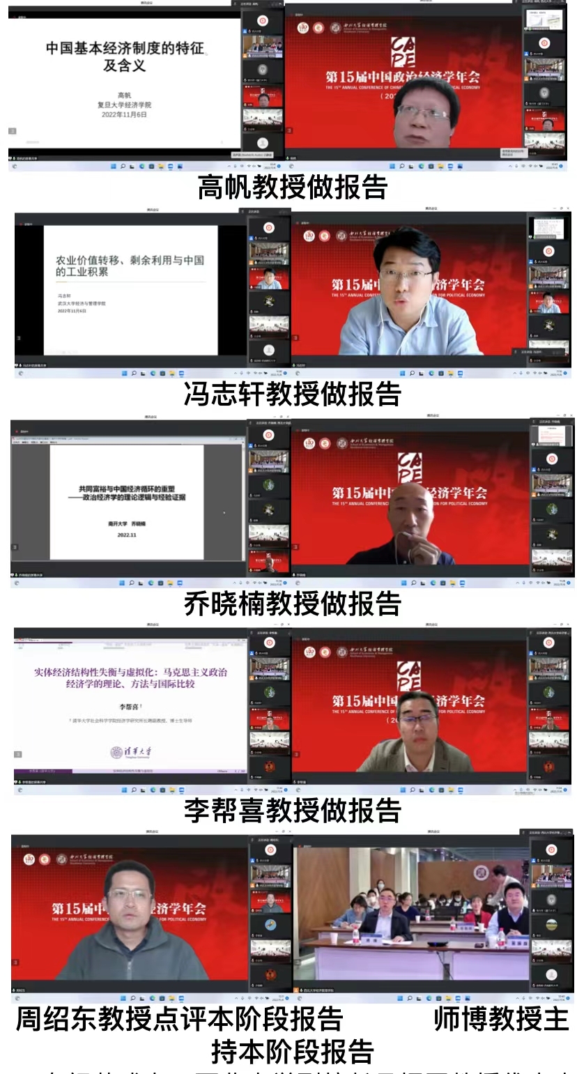 2022年11月5—6日,由中国政治经济学各理事单位共同主办、欧冠官方网站经济管理学院承办的第15届中国政治经济学年会以“线上+线下”相结合的方式成功举行。本次会议共进行2场主旨报告、14场主题报告,7个分论坛60余篇论文交流,来自北京大学、清华大学、中国人民大学、中国社会科学院、复旦大学、南开大学、厦门大学、武汉大学、南京大学、四川大学、辽宁大学、西南财经大学、广东外语外贸大学、天津师范大学和欧冠官方网站等40余所国内重点高校和科研院所的150余位正式会议嘉宾围绕马克思主义政治经济学、中国特色社会主义政治经济学等重大理论和实践议题,发表观点、开展交流;线下200余名欧冠官方网站经济管理学院师生参会,超2000人在线参与论坛,主论坛网络直播超5000人次观看,累计8000余人次参会。