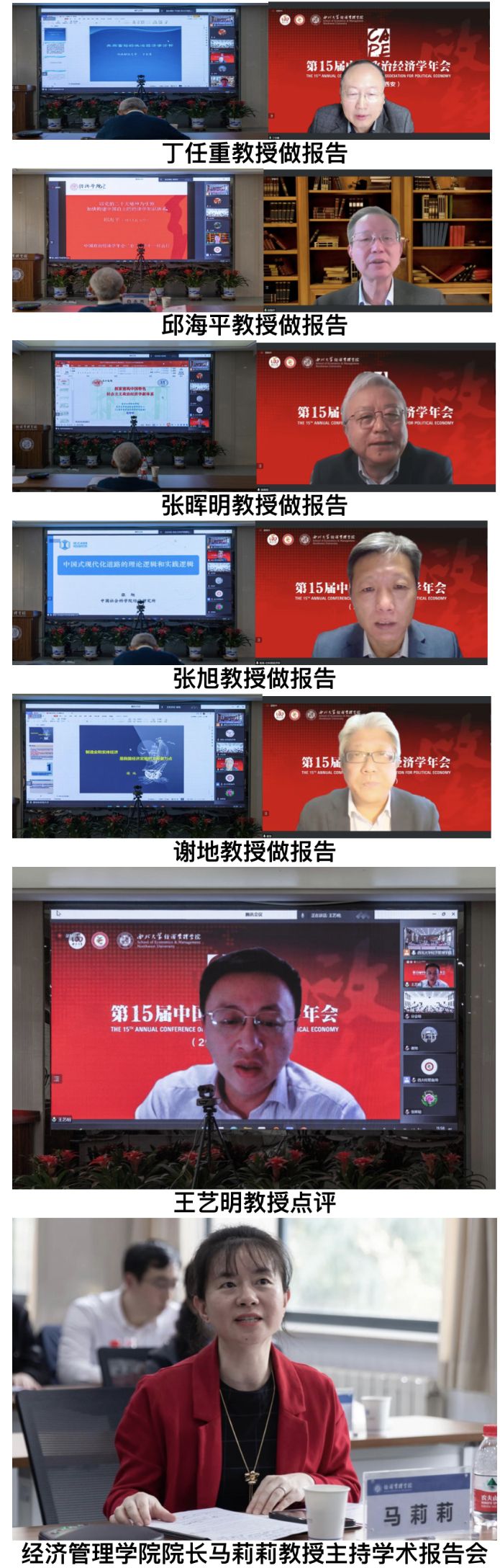 随后举行的学术报告会上,西南财经大学马克思主义经济研究院院长、原四川师范大学党委书记、校长丁任重教授以《共同富裕的政治经济学分析》为题、中国人民大学邱海平教授以《二十大精神为引领 加快构建中国自主的经济学知识体系》为题、复旦大学长三角研究院副院长张晖明教授以《构建中国特色社会主义政治经济学新体系的四点思考》为题、全国中国特色社会主义政治经济学研究中心副主任、中国社会科学院张旭教授以《中国式现代化的理论逻辑与实践逻辑》为题、辽宁大学经济学部副部长、经济学院谢地教授以《制造业和实体经济是我国经济发展的主要着力点》为题分别作了精彩报告,厦门大学王亚南经济研究院副院长王艺明教授就各位专家学者的报告作了精彩点评。本阶段报告会由欧冠官方网站经济管理学院院长马莉莉教授主持。