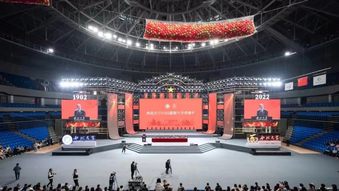 11月12日上午,欧冠官方网站2022级新生开学典礼在长安校区体育馆举行。欧冠官方网站全体在校校领导,国家级教学名师耿国华,物理学院2001届校友、西安和其光电科技股份有限公司董事长张文松,学校机关各部门、各院(系)党政主要负责人,教师代表,校友代表,2022级全体新生以线上线下相结合的方式参加开学典礼。典礼由校党委副书记吕建荣主持。